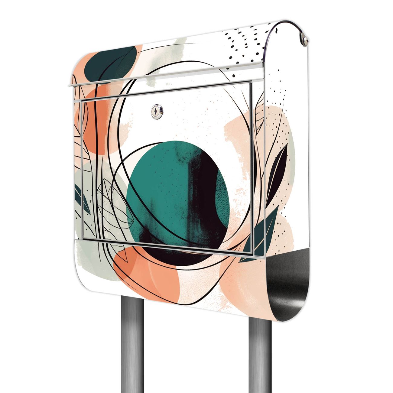 Der Motivstandbriefkasten hat ein sehr ansprechendes und ausgefallenes Design, damit entlocken Sie Ihren Nachbarn und dem Postboten ein Lächeln. Heben Sie Sich ab von der tristen grauen Masse, ohne auf Funktionalität zu verzichten. Der Briefkasten besteht aus hochwertigem 18/0 Edelstahl und die Wetter- und UV-resistenten Folie mit Motiv Abstrakte Formen Motiv ist zusätzlich mit einem Schutzlaminat überzogen. Der Standbriefkasten wird mit Montagematerial und zwei Schlüsseln geliefert.