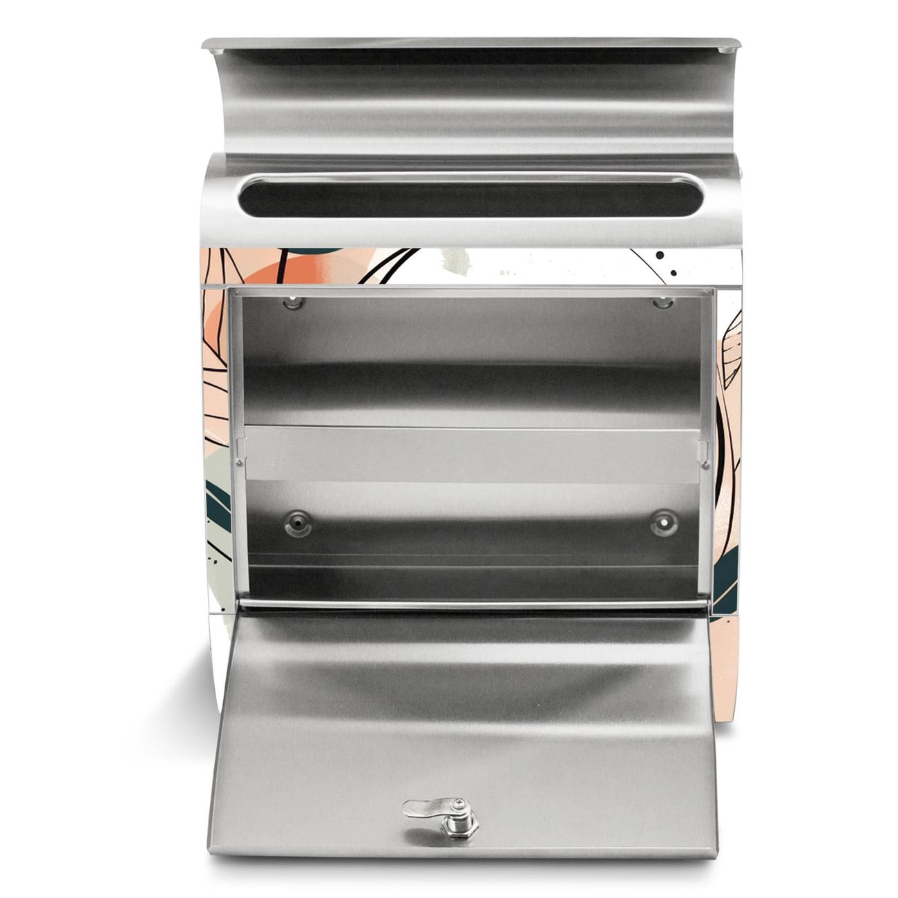 Der banjado Edelstahl Standbriefkasten mit Motiv Motiv Abstrakte Formen bietet Ihnen mit seinem Fassungsvermögen genügend Platz auch für große A4 Sendungen. Das integrierte Zeitungsfach eignet sich hervorragend, um unkompliziert die Tageszeitung zu fassen.