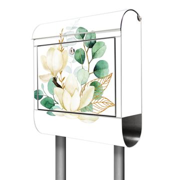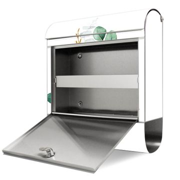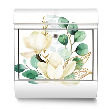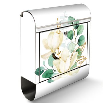 Der banjado Edelstahl Standbriefkasten mit Motiv Motiv Magnolienkomposition bietet Ihnen mit seinem Fassungsvermögen genügend Platz auch für große A4 Sendungen. Das integrierte Zeitungsfach eignet sich hervorragend, um unkompliziert die Tageszeitung zu fassen.