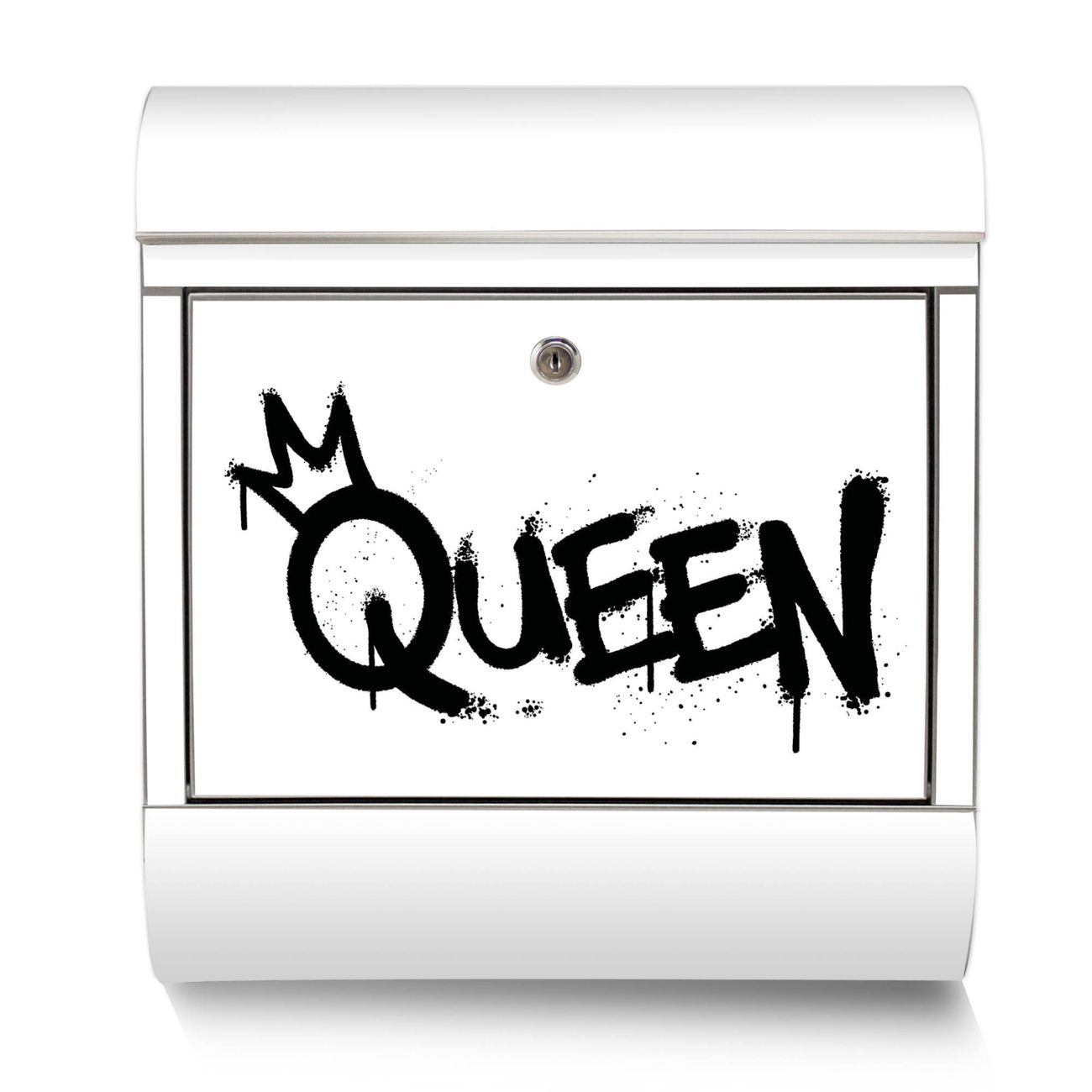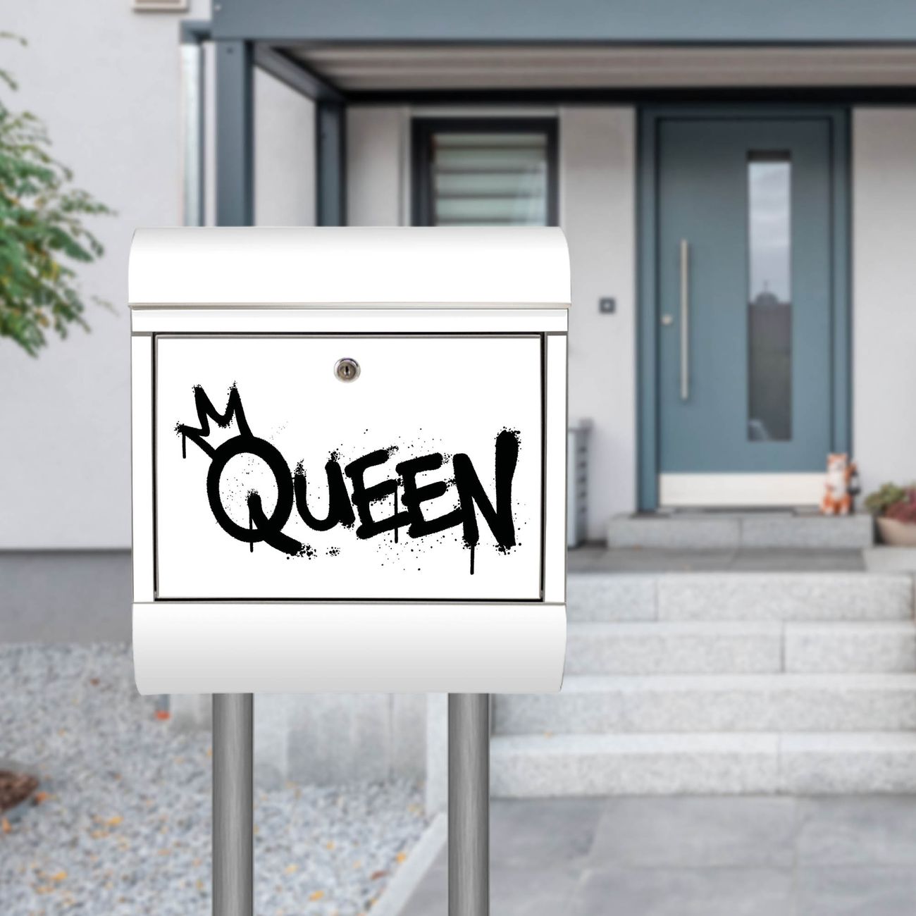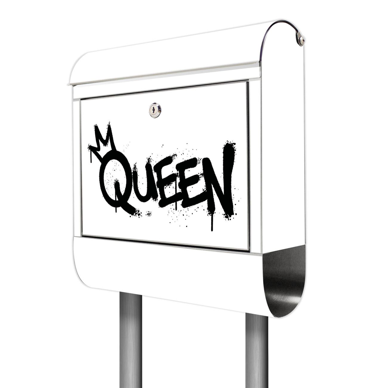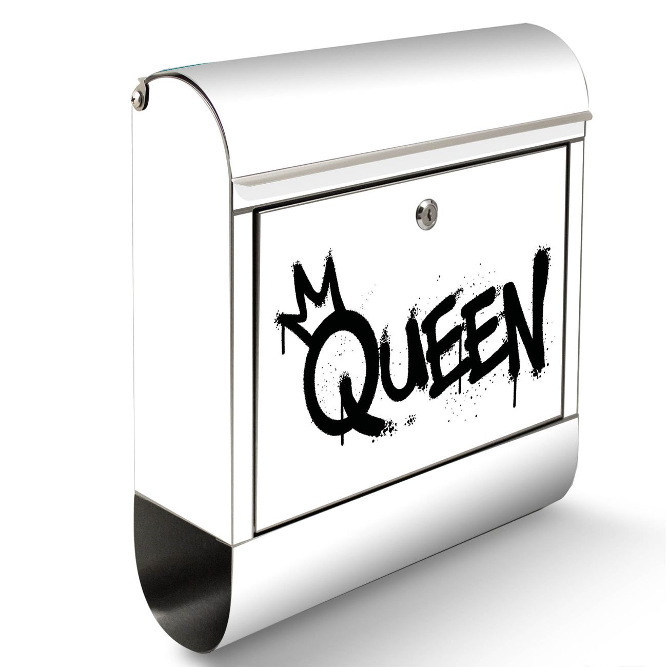 Der banjado Edelstahl Standbriefkasten mit Motiv Motiv Queen Graffiti bietet Ihnen mit seinem Fassungsvermögen genügend Platz auch für große A4 Sendungen. Das integrierte Zeitungsfach eignet sich hervorragend, um unkompliziert die Tageszeitung zu fassen.