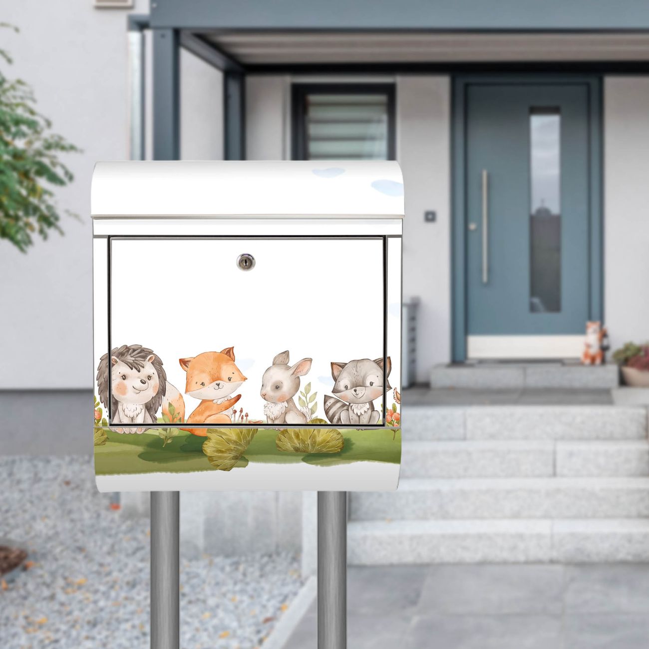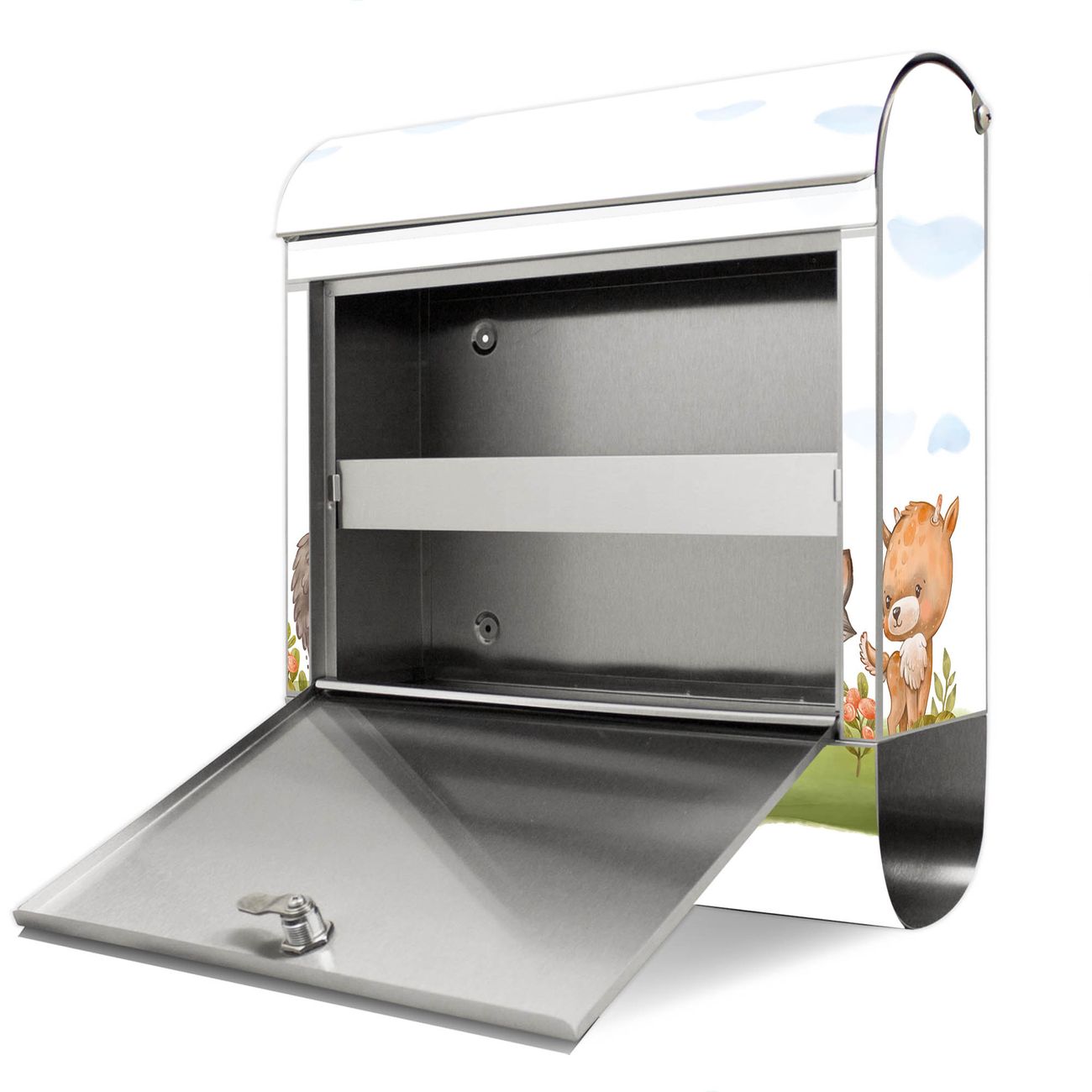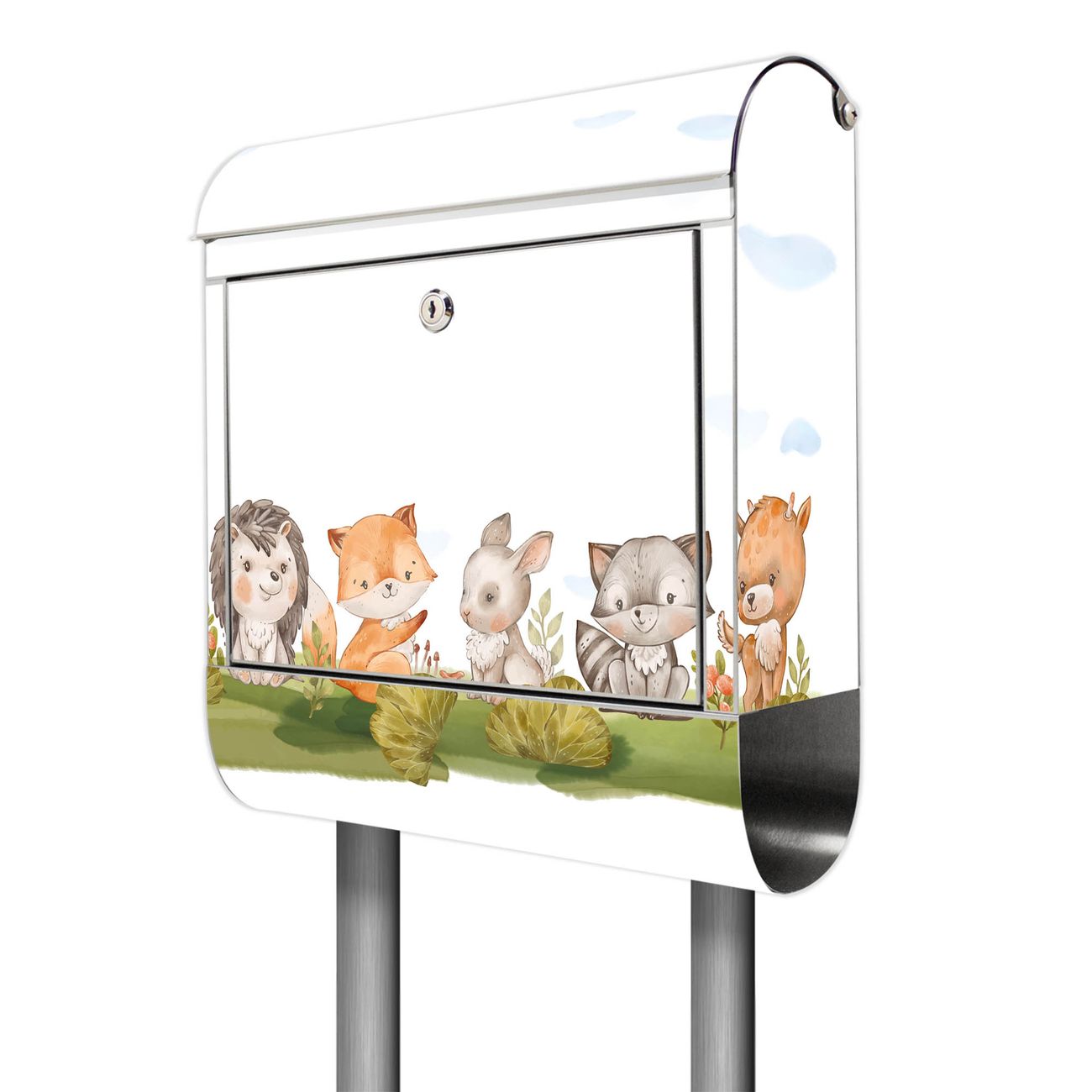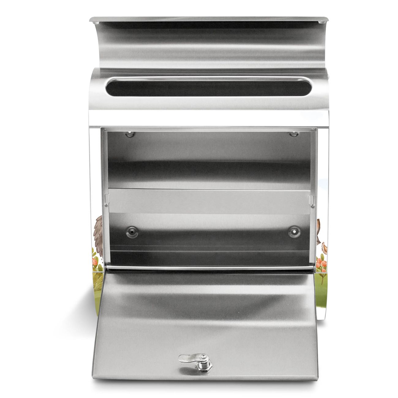 Der Motivstandbriefkasten hat ein sehr ansprechendes und ausgefallenes Design, damit entlocken Sie Ihren Nachbarn und dem Postboten ein Lächeln. Heben Sie Sich ab von der tristen grauen Masse, ohne auf Funktionalität zu verzichten. Der Briefkasten besteht aus hochwertigem 18/0 Edelstahl und die Wetter- und UV-resistenten Folie mit Motiv Waldfreunde 2 Motiv ist zusätzlich mit einem Schutzlaminat überzogen. Der Standbriefkasten wird mit Montagematerial und zwei Schlüsseln geliefert.