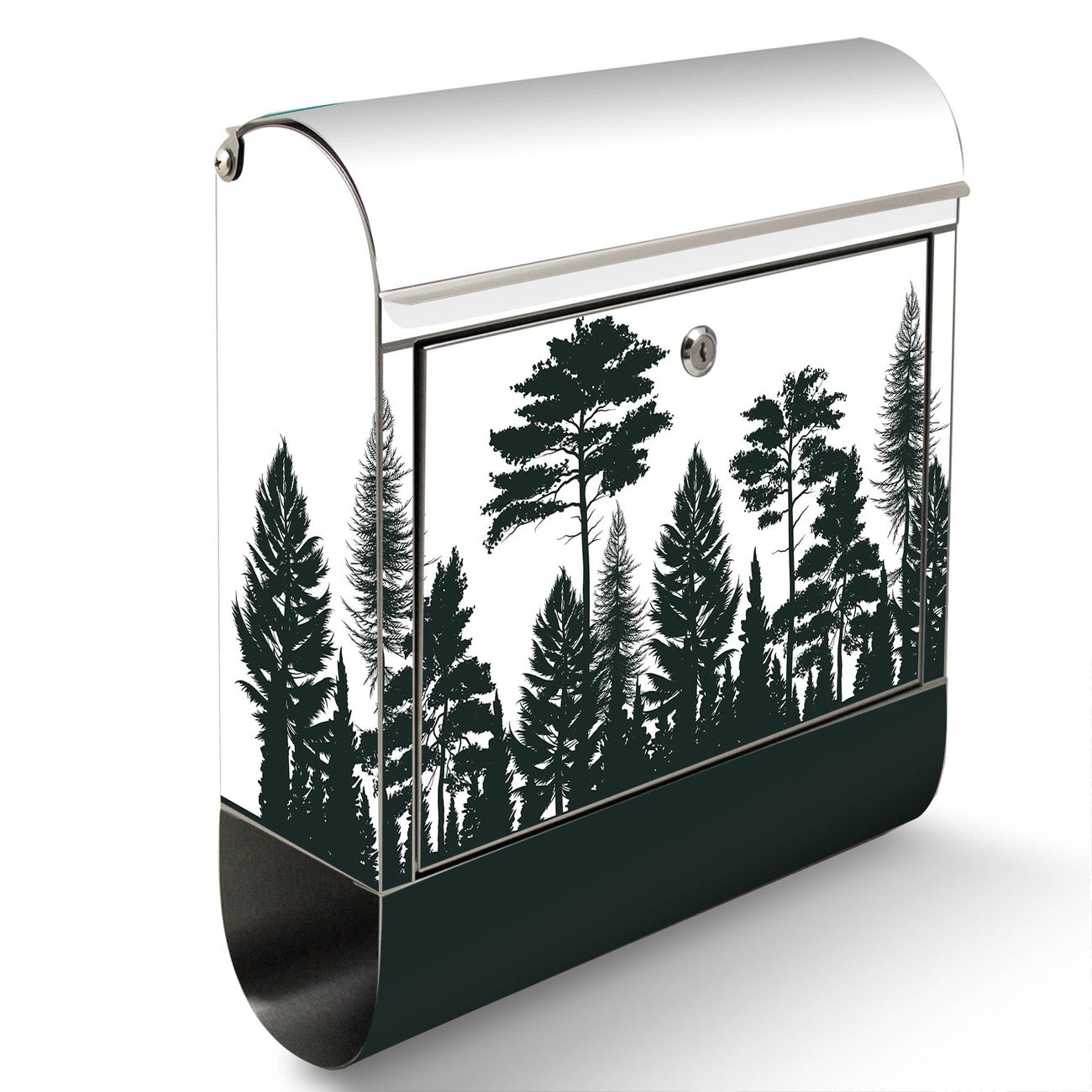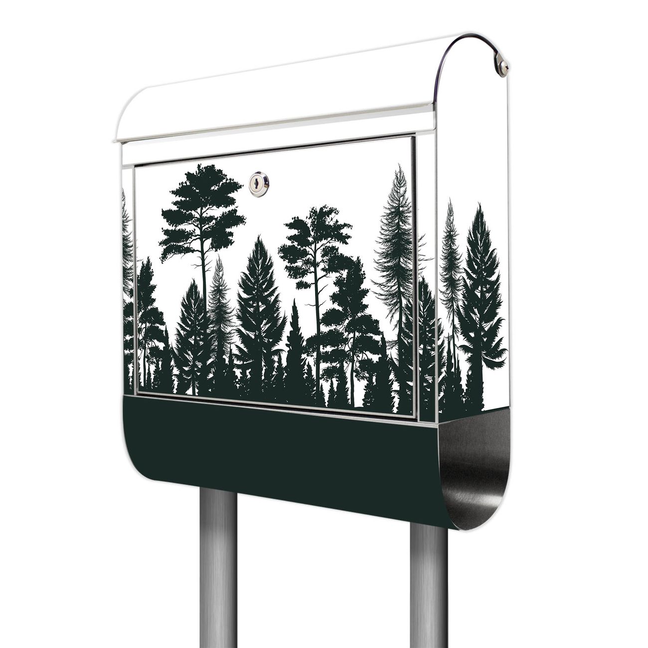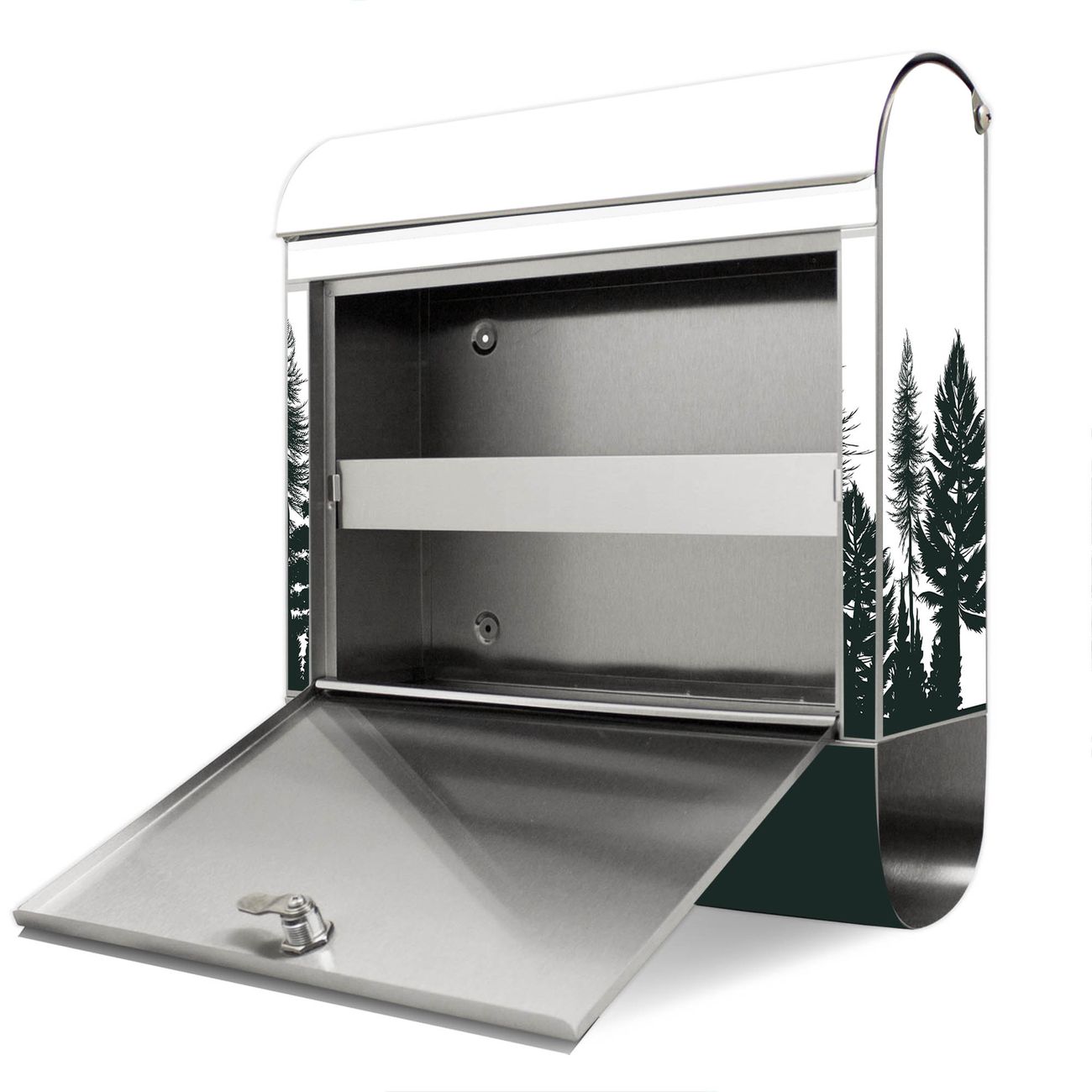 Der Motivstandbriefkasten hat ein sehr ansprechendes und ausgefallenes Design, damit entlocken Sie Ihren Nachbarn und dem Postboten ein Lächeln. Heben Sie Sich ab von der tristen grauen Masse, ohne auf Funktionalität zu verzichten. Der Briefkasten besteht aus hochwertigem 18/0 Edelstahl und die Wetter- und UV-resistenten Folie mit Motiv Waldsilhouette Motiv ist zusätzlich mit einem Schutzlaminat überzogen. Der Standbriefkasten wird mit Montagematerial und zwei Schlüsseln geliefert.