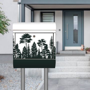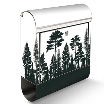 Der banjado Edelstahl Standbriefkasten mit Motiv Motiv Waldsilhouette bietet Ihnen mit seinem Fassungsvermögen genügend Platz auch für große A4 Sendungen. Das integrierte Zeitungsfach eignet sich hervorragend, um unkompliziert die Tageszeitung zu fassen.