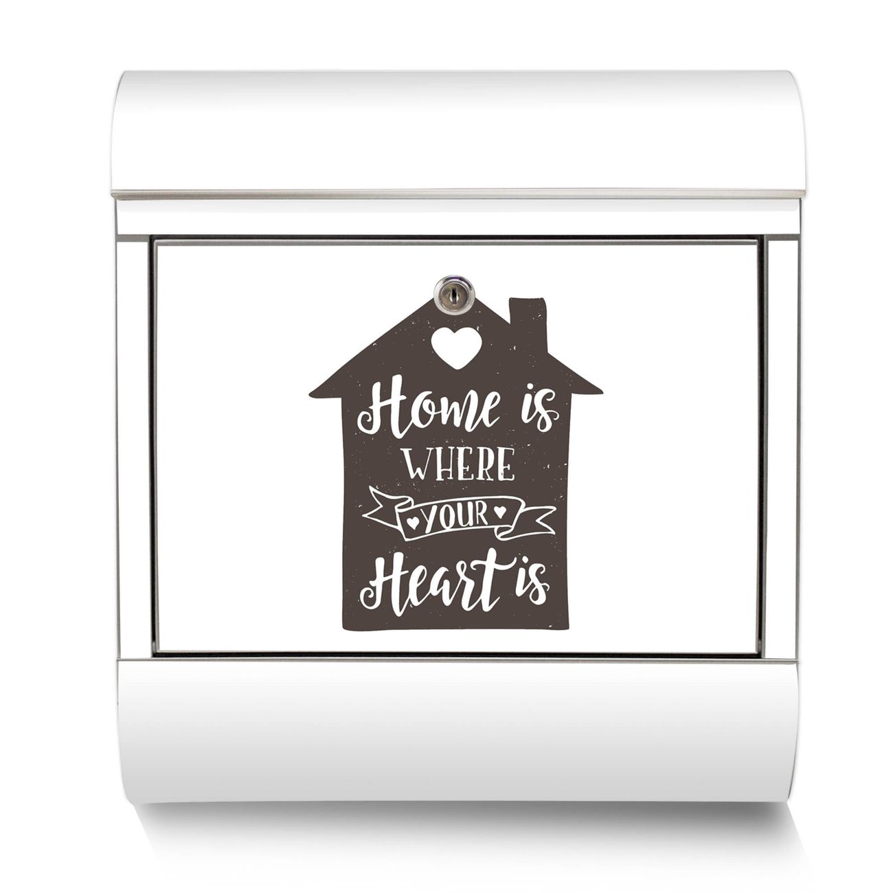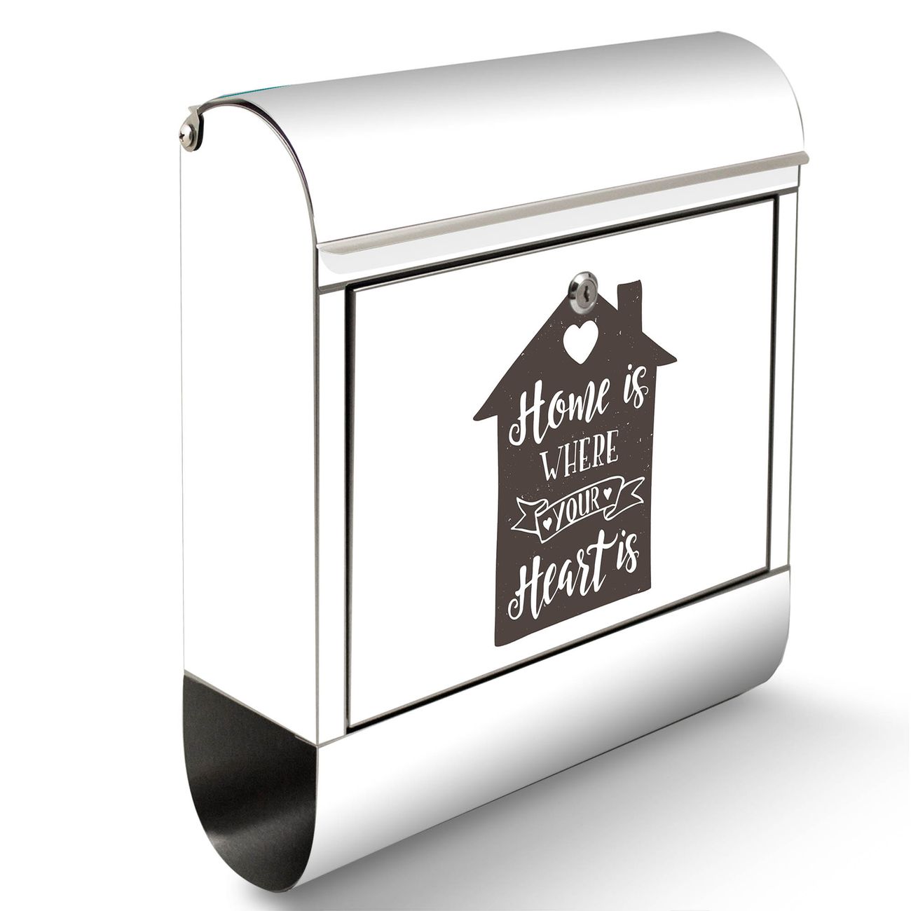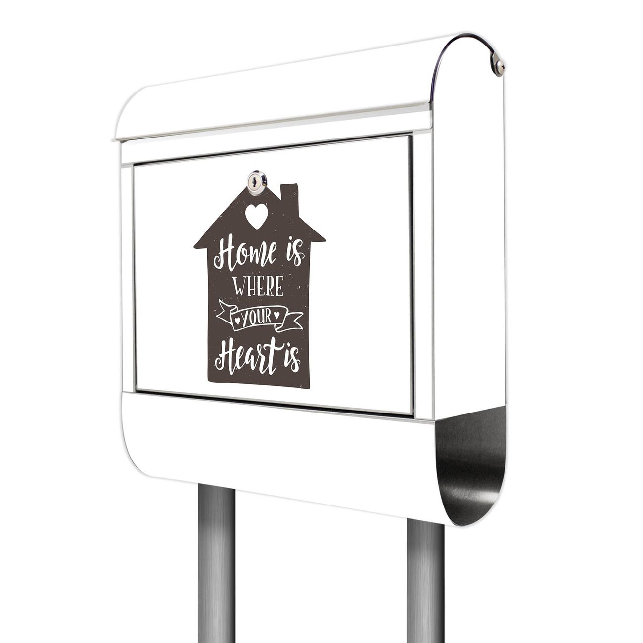 Der Motivstandbriefkasten hat ein sehr ansprechendes und ausgefallenes Design, damit entlocken Sie Ihren Nachbarn und dem Postboten ein Lächeln. Heben Sie Sich ab von der tristen grauen Masse, ohne auf Funktionalität zu verzichten. Der Briefkasten besteht aus hochwertigem 18/0 Edelstahl und die Wetter- und UV-resistenten Folie mit Motiv Home is where your Heart is Motiv ist zusätzlich mit einem Schutzlaminat überzogen. Der Standbriefkasten wird mit Montagematerial und zwei Schlüsseln geliefert.