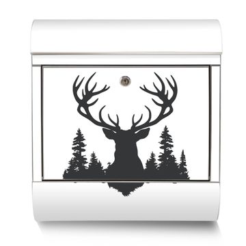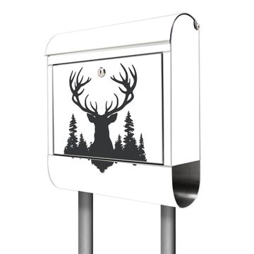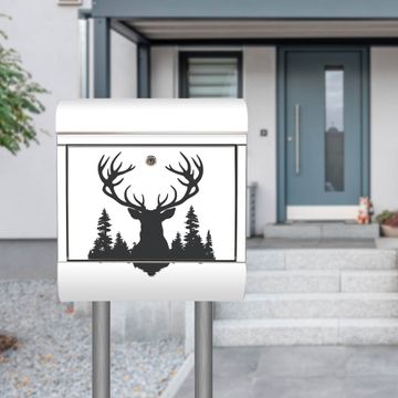 Der banjado Edelstahl Standbriefkasten mit Motiv Motiv Hirsch im Wald Silhouette bietet Ihnen mit seinem Fassungsvermögen genügend Platz auch für große A4 Sendungen. Das integrierte Zeitungsfach eignet sich hervorragend, um unkompliziert die Tageszeitung zu fassen.