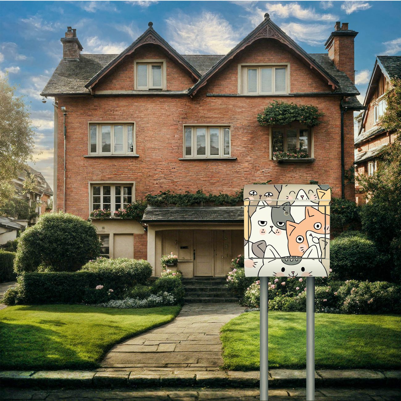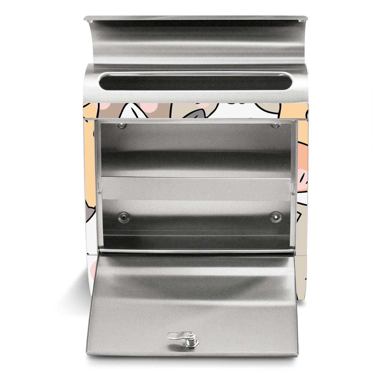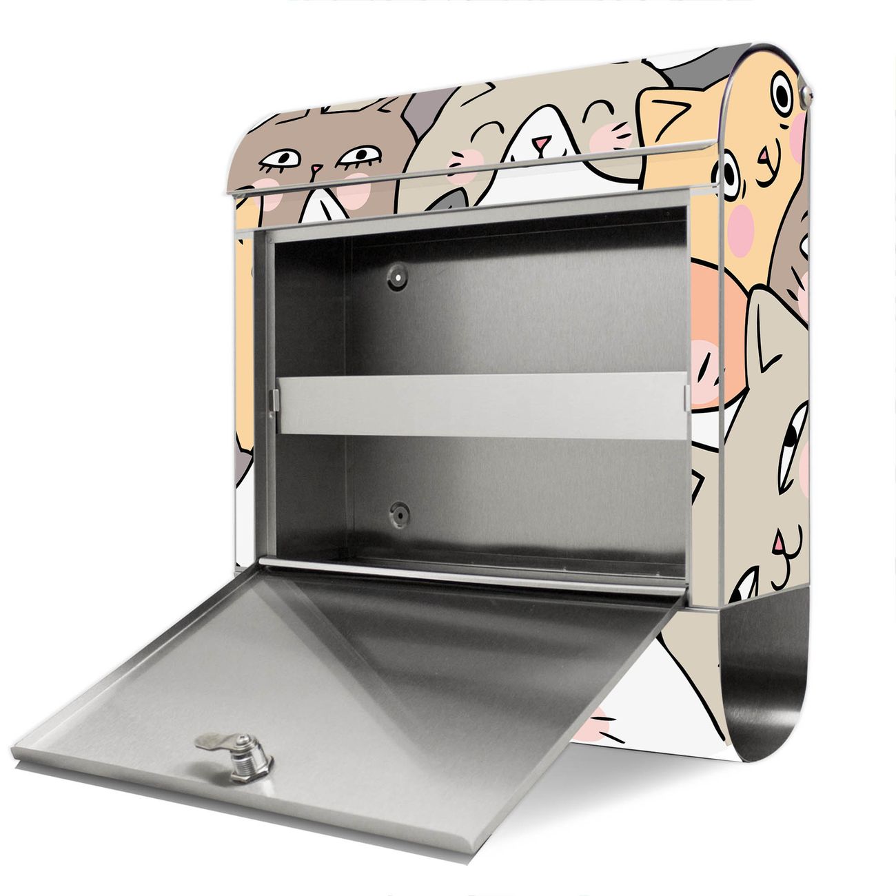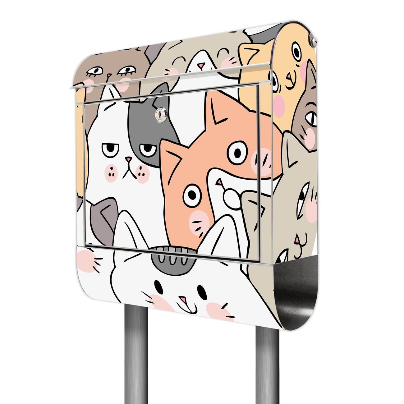 Der Motivstandbriefkasten hat ein sehr ansprechendes und ausgefallenes Design, damit entlocken Sie Ihren Nachbarn und dem Postboten ein Lächeln. Heben Sie Sich ab von der tristen grauen Masse, ohne auf Funktionalität zu verzichten. Der Briefkasten besteht aus hochwertigem 18/0 Edelstahl und die Wetter- und UV-resistenten Folie mit Motiv Katzen Gruppe neugierig Motiv ist zusätzlich mit einem Schutzlaminat überzogen. Der Standbriefkasten wird mit Montagematerial und zwei Schlüsseln geliefert.