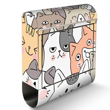 Der banjado Edelstahl Standbriefkasten mit Motiv Motiv Katzen Gruppe neugierig bietet Ihnen mit seinem Fassungsvermögen genügend Platz auch für große A4 Sendungen. Das integrierte Zeitungsfach eignet sich hervorragend, um unkompliziert die Tageszeitung zu fassen.