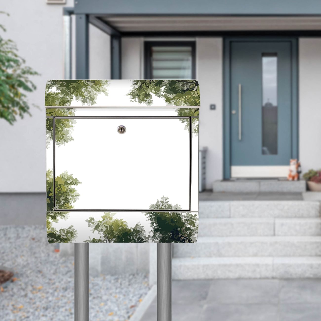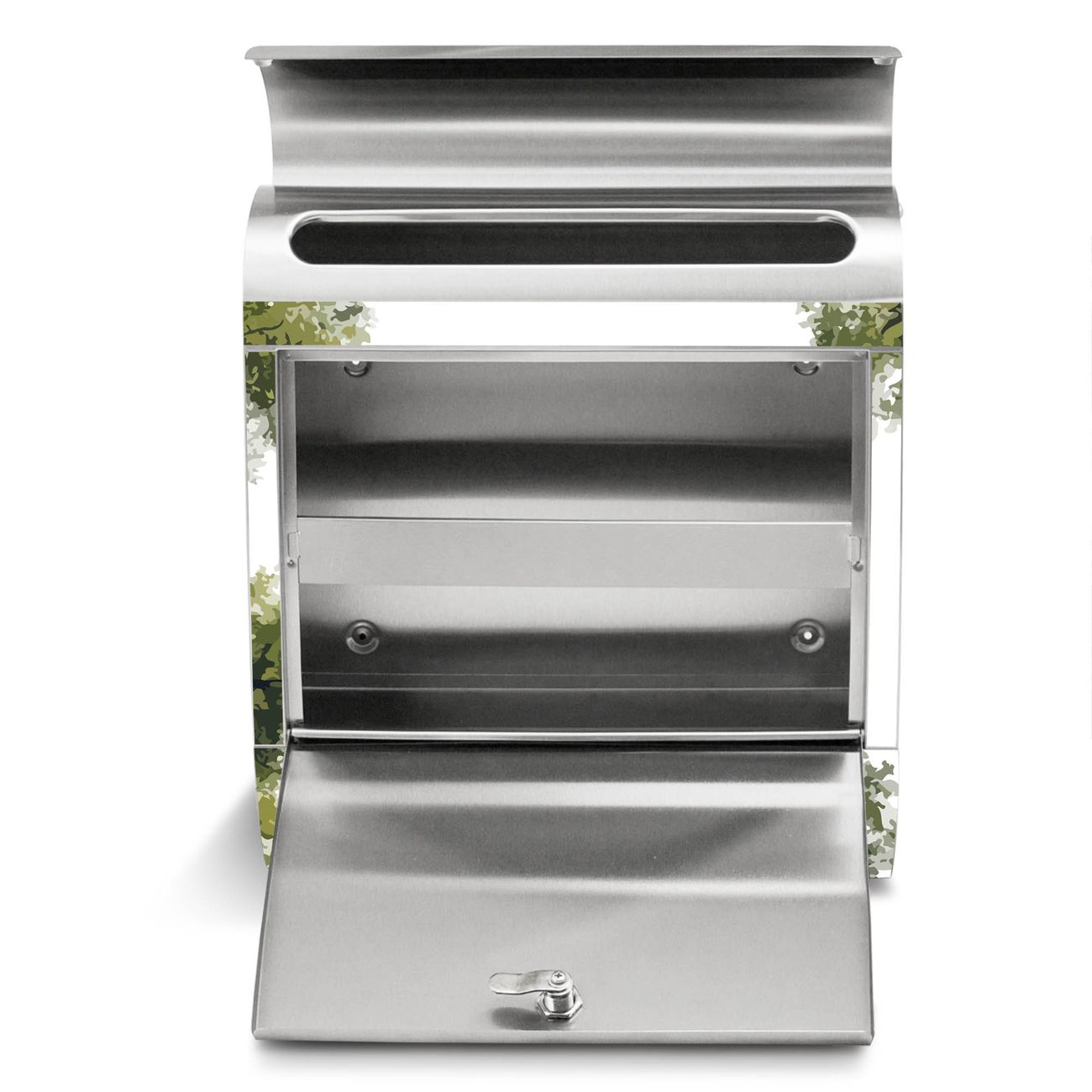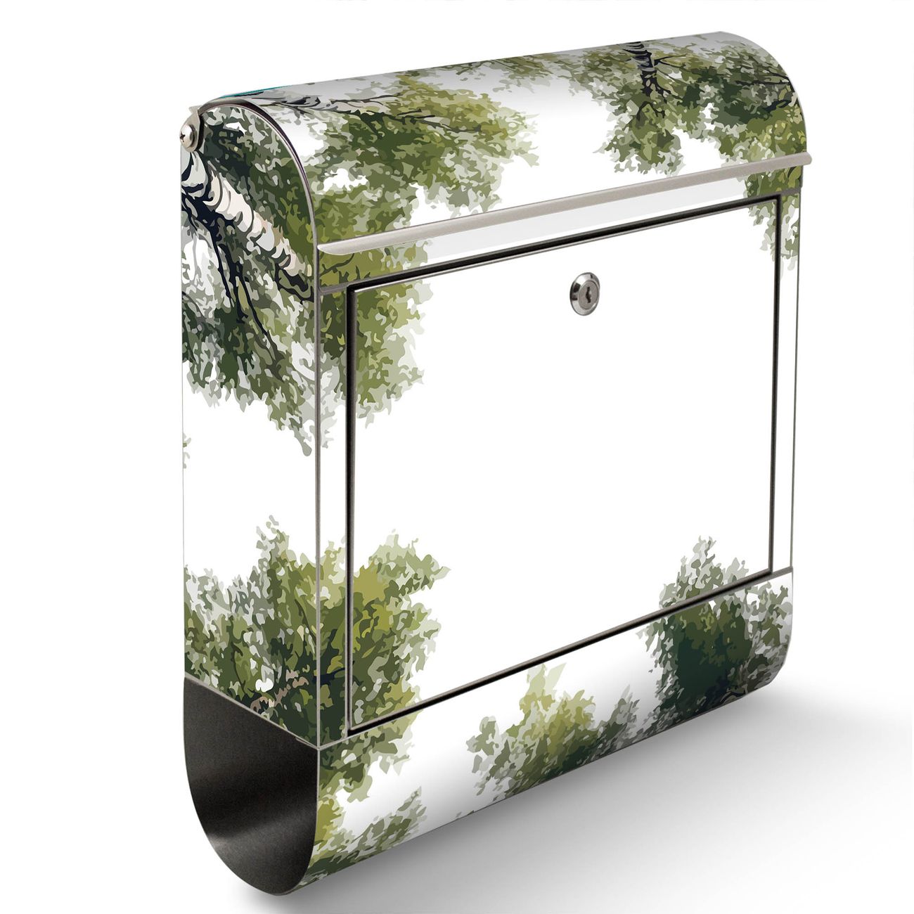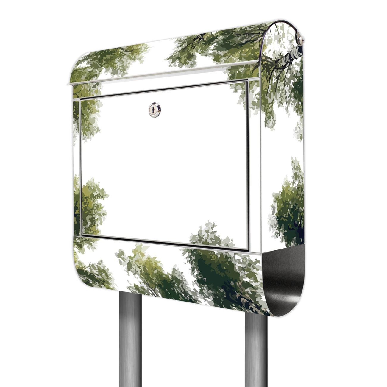 Der Motivstandbriefkasten hat ein sehr ansprechendes und ausgefallenes Design, damit entlocken Sie Ihren Nachbarn und dem Postboten ein Lächeln. Heben Sie Sich ab von der tristen grauen Masse, ohne auf Funktionalität zu verzichten. Der Briefkasten besteht aus hochwertigem 18/0 Edelstahl und die Wetter- und UV-resistenten Folie mit Motiv Waldhimmel Motiv ist zusätzlich mit einem Schutzlaminat überzogen. Der Standbriefkasten wird mit Montagematerial und zwei Schlüsseln geliefert.