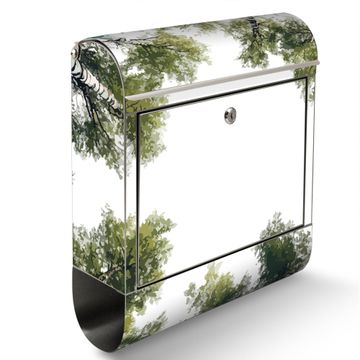 Der banjado Edelstahl Standbriefkasten mit Motiv Motiv Waldhimmel bietet Ihnen mit seinem Fassungsvermögen genügend Platz auch für große A4 Sendungen. Das integrierte Zeitungsfach eignet sich hervorragend, um unkompliziert die Tageszeitung zu fassen.
