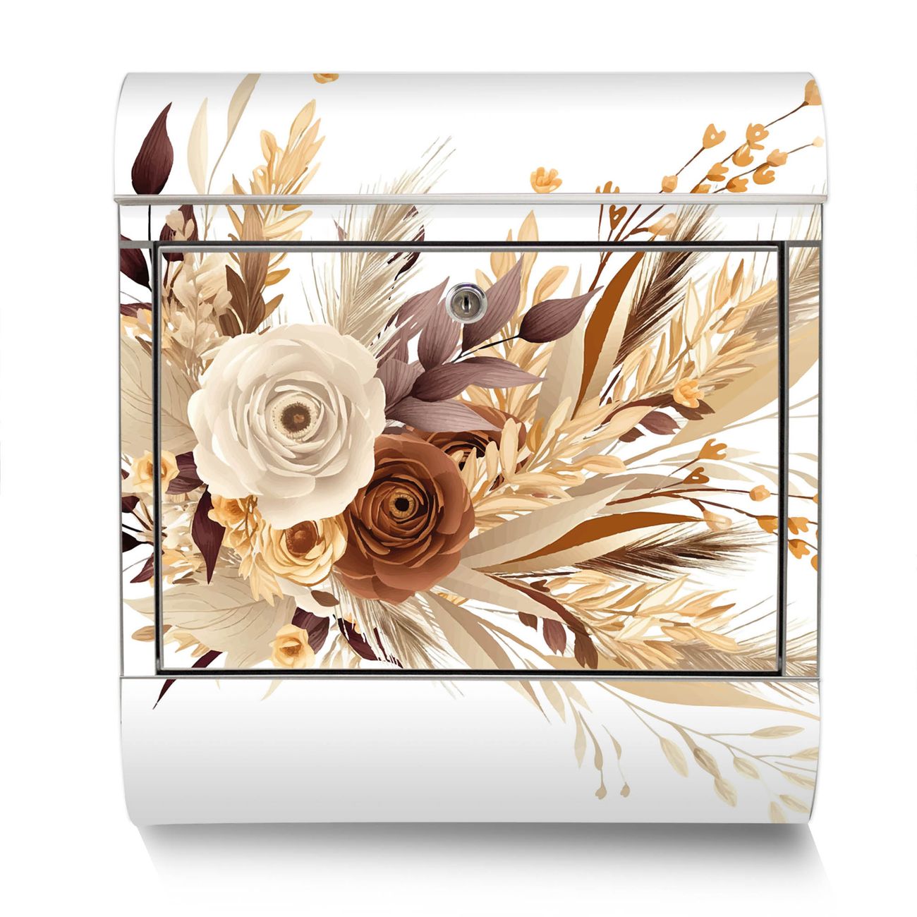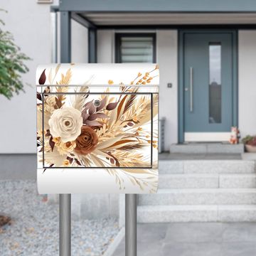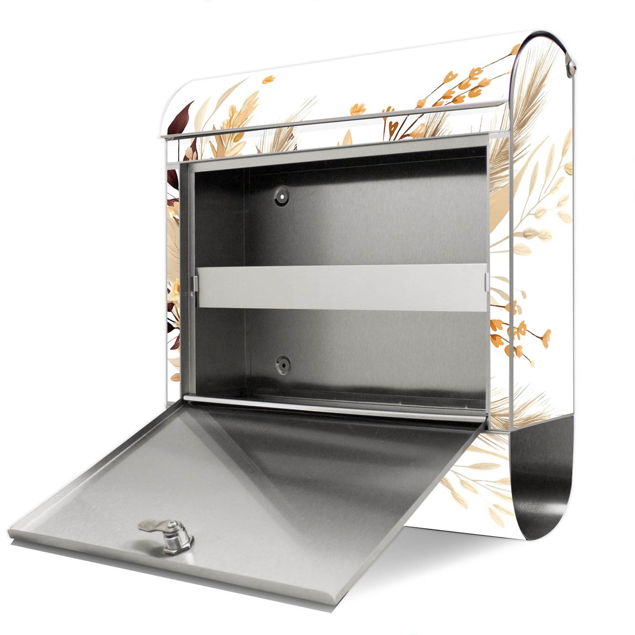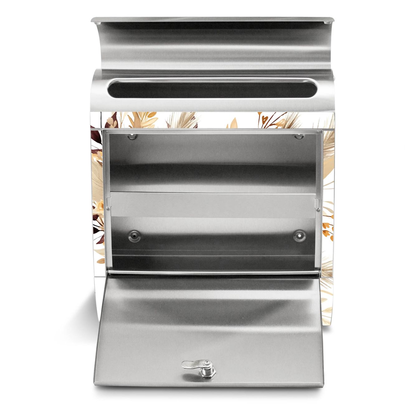 Der banjado Edelstahl Standbriefkasten mit Motiv Motiv Herbstlicher Blumenstrauß bietet Ihnen mit seinem Fassungsvermögen genügend Platz auch für große A4 Sendungen. Das integrierte Zeitungsfach eignet sich hervorragend, um unkompliziert die Tageszeitung zu fassen.