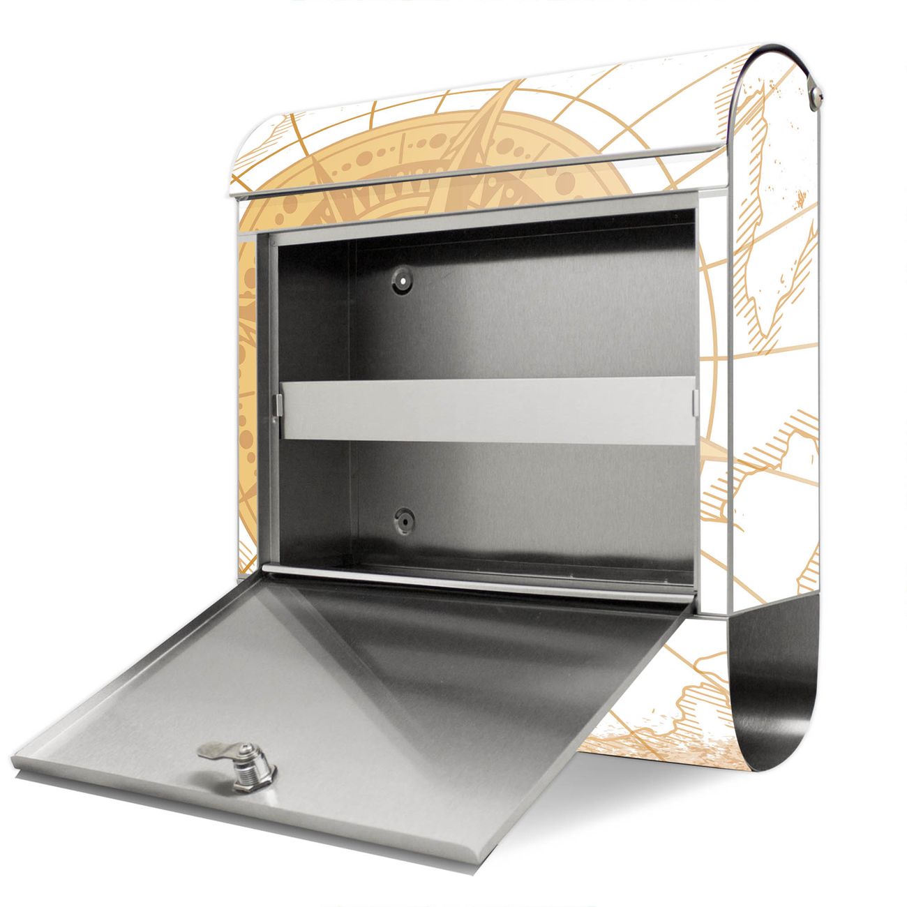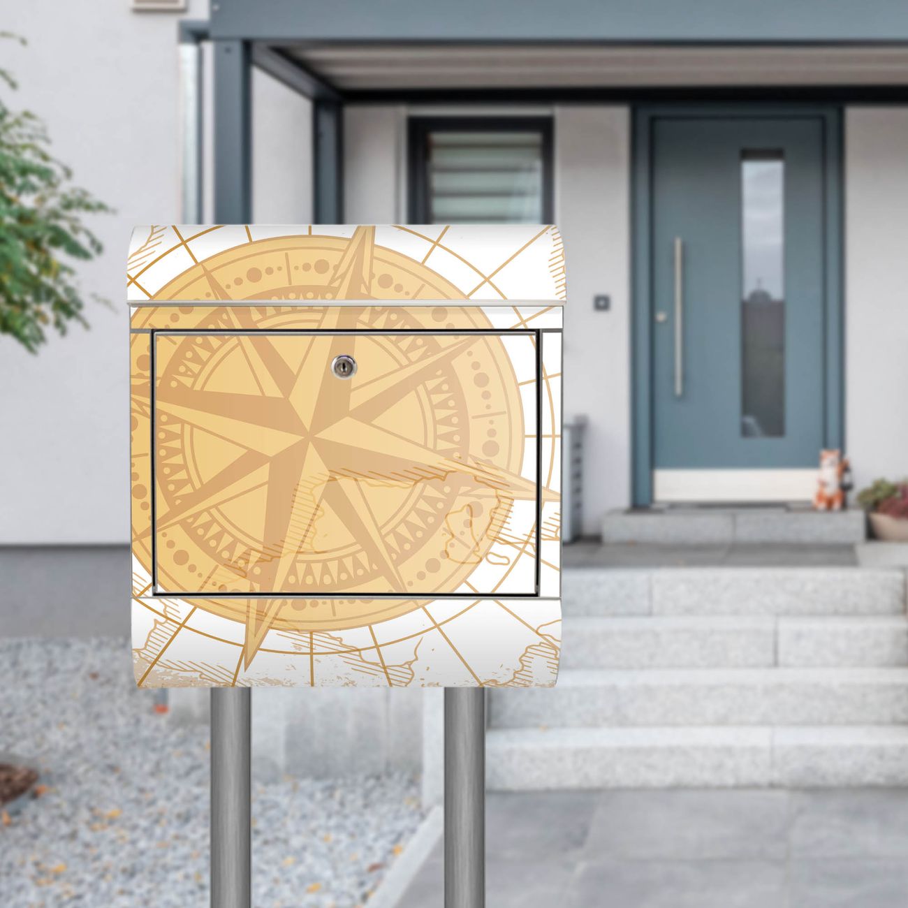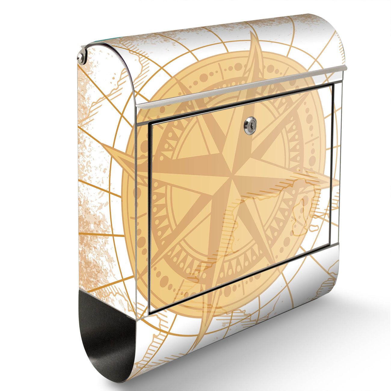 Der Motivstandbriefkasten hat ein sehr ansprechendes und ausgefallenes Design, damit entlocken Sie Ihren Nachbarn und dem Postboten ein Lächeln. Heben Sie Sich ab von der tristen grauen Masse, ohne auf Funktionalität zu verzichten. Der Briefkasten besteht aus hochwertigem 18/0 Edelstahl und die Wetter- und UV-resistenten Folie mit Motiv Antike Kompassrose Motiv ist zusätzlich mit einem Schutzlaminat überzogen. Der Standbriefkasten wird mit Montagematerial und zwei Schlüsseln geliefert.