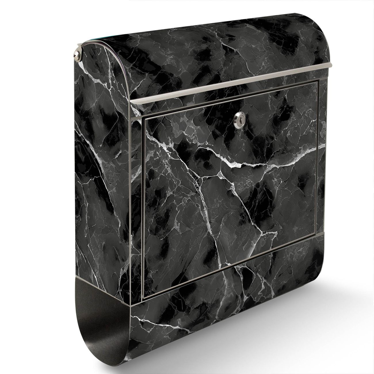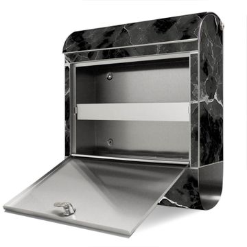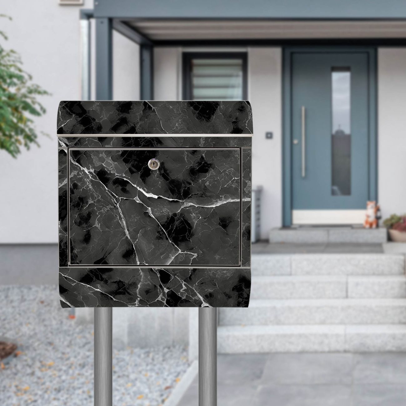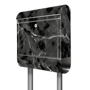 Der Motivstandbriefkasten hat ein sehr ansprechendes und ausgefallenes Design, damit entlocken Sie Ihren Nachbarn und dem Postboten ein Lächeln. Heben Sie Sich ab von der tristen grauen Masse, ohne auf Funktionalität zu verzichten. Der Briefkasten besteht aus hochwertigem 18/0 Edelstahl und die Wetter- und UV-resistenten Folie mit Motiv Schwarzgrauer Marmor Motiv ist zusätzlich mit einem Schutzlaminat überzogen. Der Standbriefkasten wird mit Montagematerial und zwei Schlüsseln geliefert.