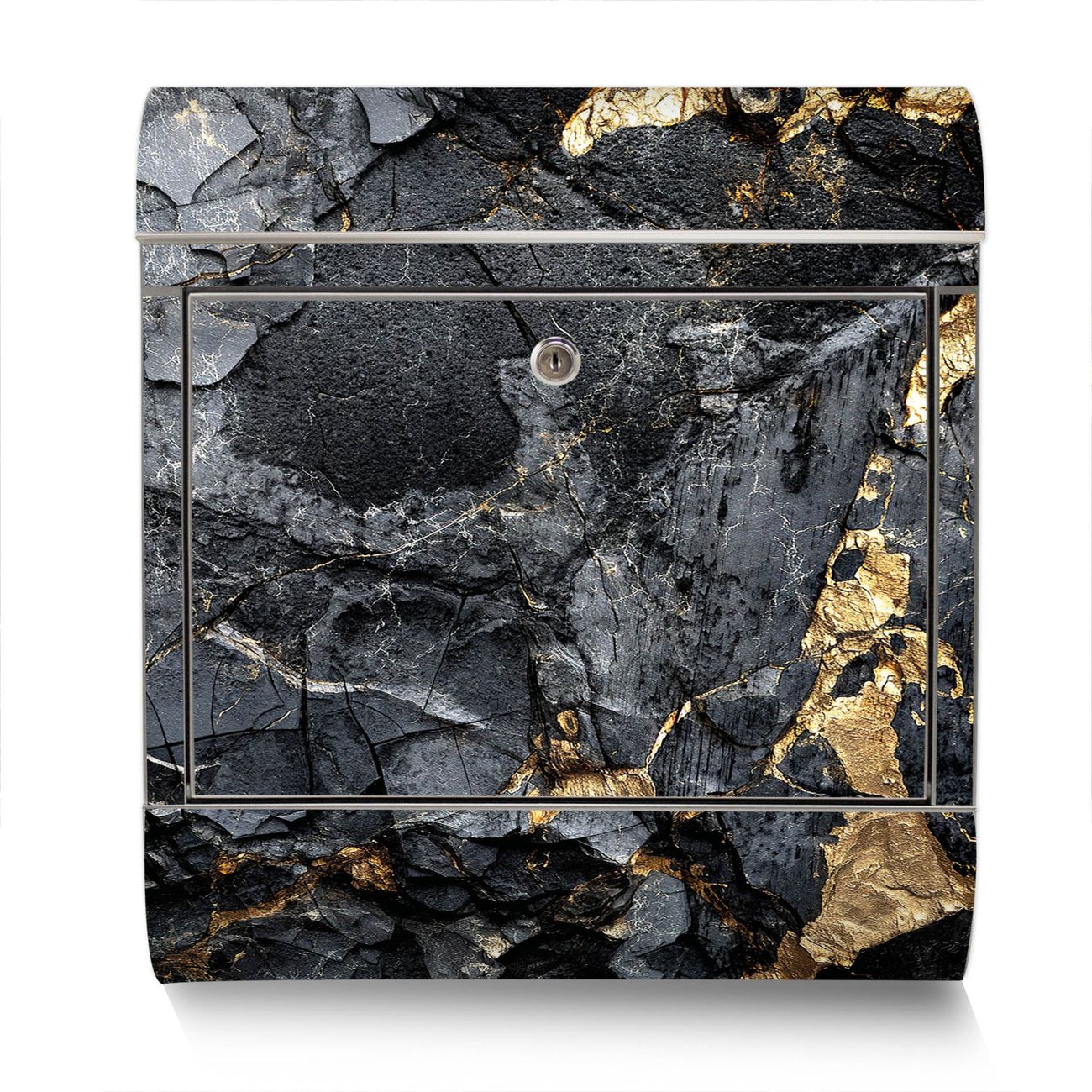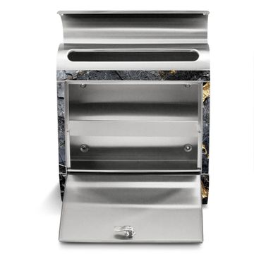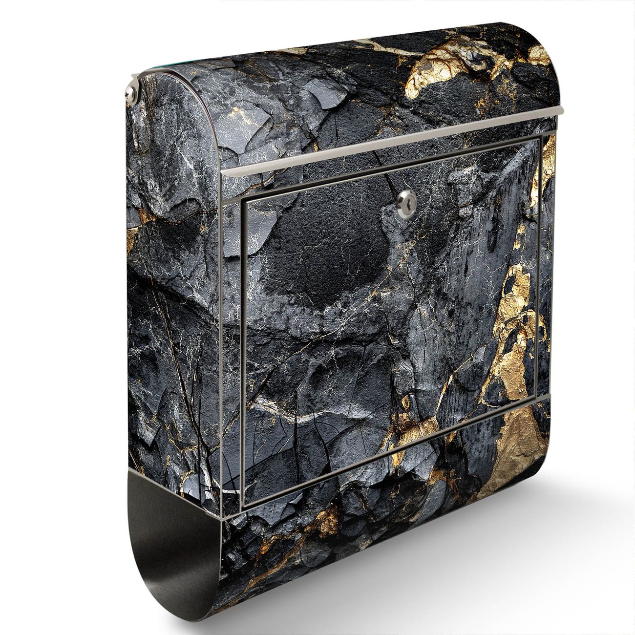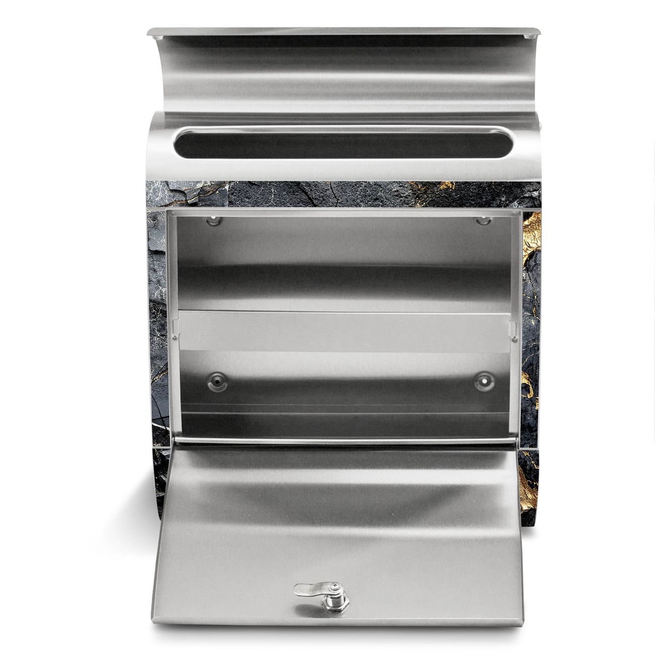 Der banjado Edelstahl Standbriefkasten mit Motiv Motiv Schwarzer Marmor mit Gold 1 bietet Ihnen mit seinem Fassungsvermögen genügend Platz auch für große A4 Sendungen. Das integrierte Zeitungsfach eignet sich hervorragend, um unkompliziert die Tageszeitung zu fassen.