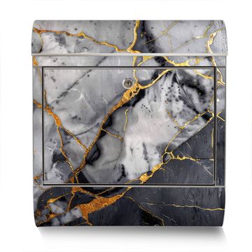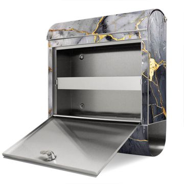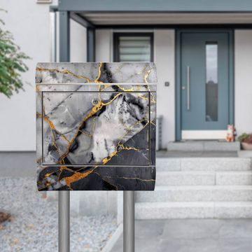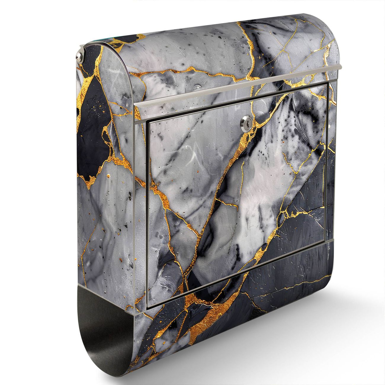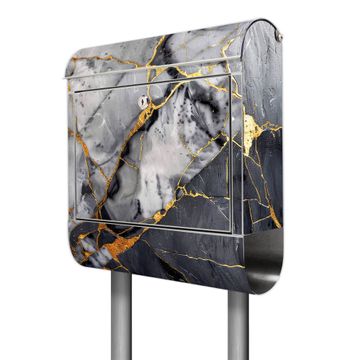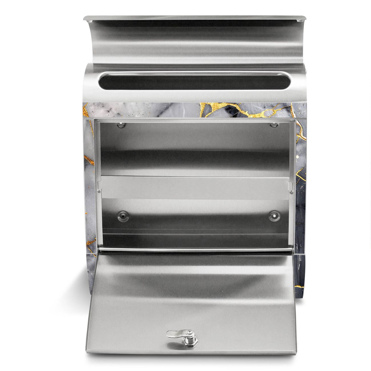 Der banjado Edelstahl Standbriefkasten mit Motiv Motiv Schwarzer Marmor mit Gold 2 bietet Ihnen mit seinem Fassungsvermögen genügend Platz auch für große A4 Sendungen. Das integrierte Zeitungsfach eignet sich hervorragend, um unkompliziert die Tageszeitung zu fassen.