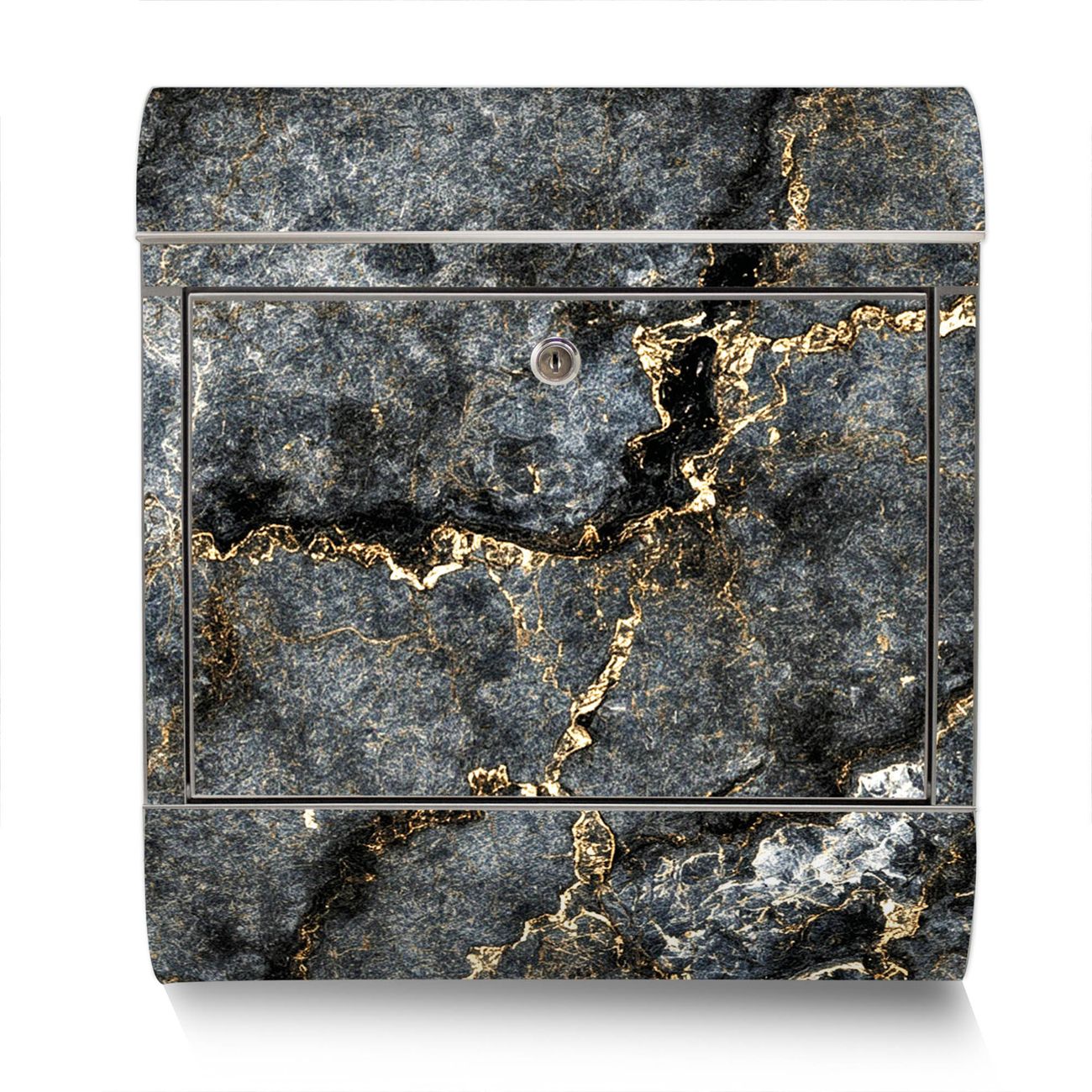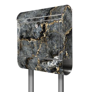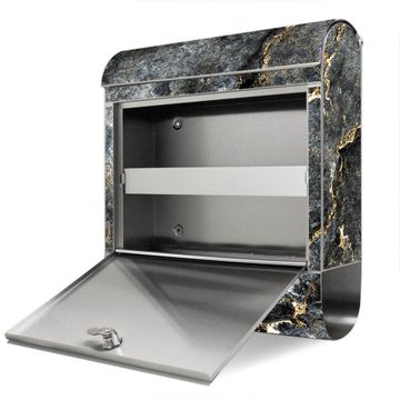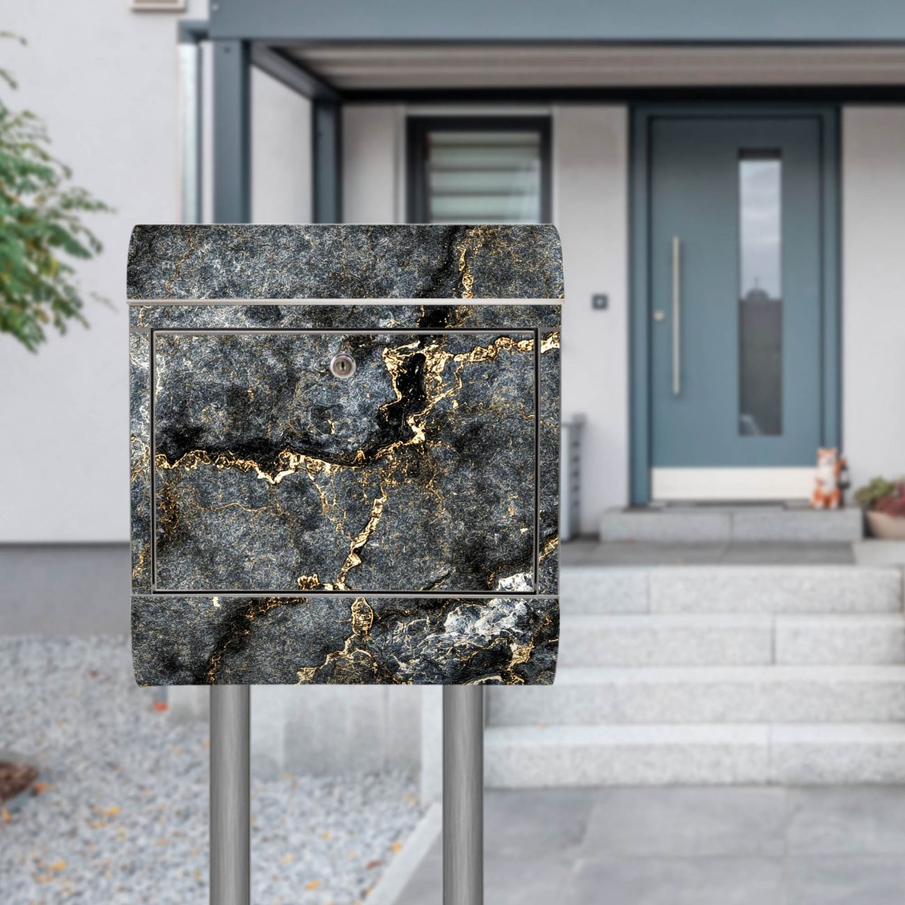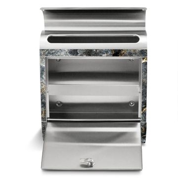 Der banjado Edelstahl Standbriefkasten mit Motiv Motiv grauer Marmor mit Gold 2 bietet Ihnen mit seinem Fassungsvermögen genügend Platz auch für große A4 Sendungen. Das integrierte Zeitungsfach eignet sich hervorragend, um unkompliziert die Tageszeitung zu fassen.