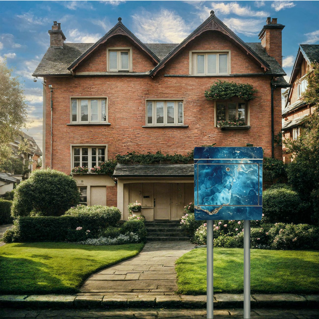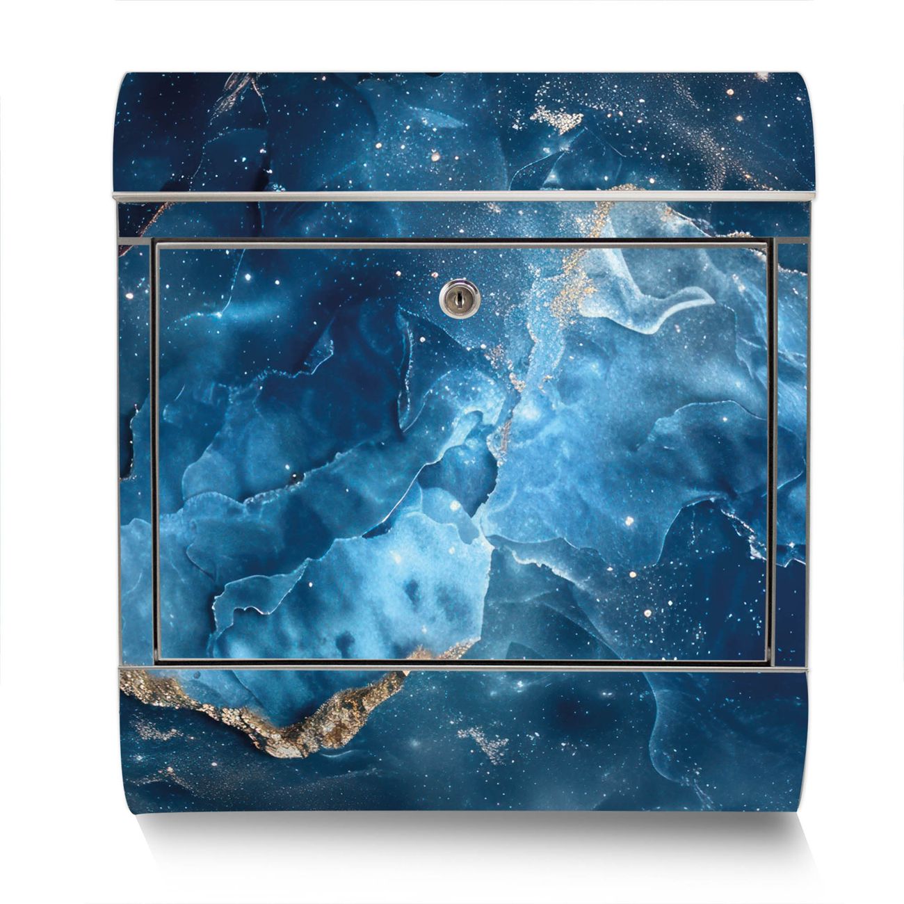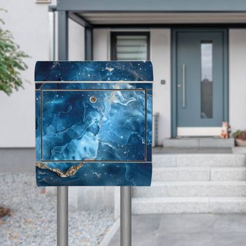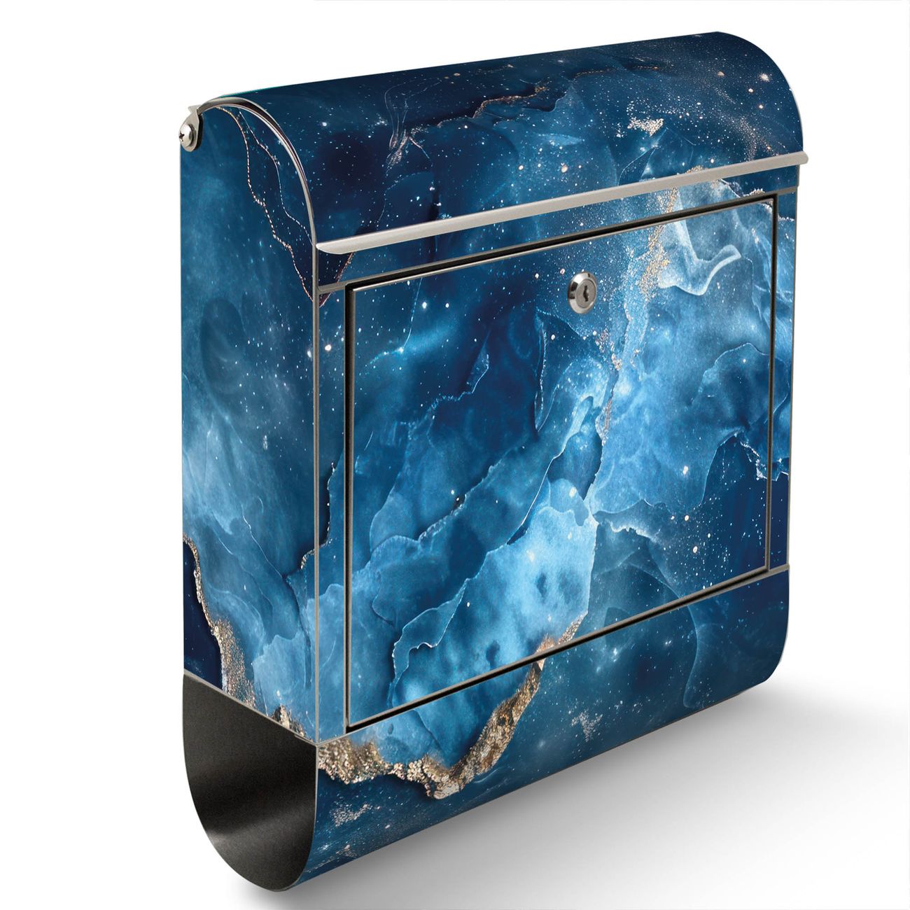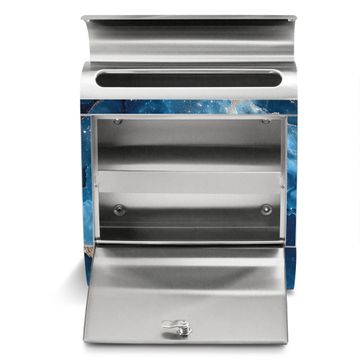 Der banjado Edelstahl Standbriefkasten mit Motiv Motiv Blauer Marmor mit Gold 1 bietet Ihnen mit seinem Fassungsvermögen genügend Platz auch für große A4 Sendungen. Das integrierte Zeitungsfach eignet sich hervorragend, um unkompliziert die Tageszeitung zu fassen.