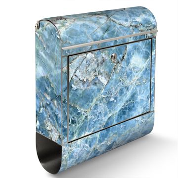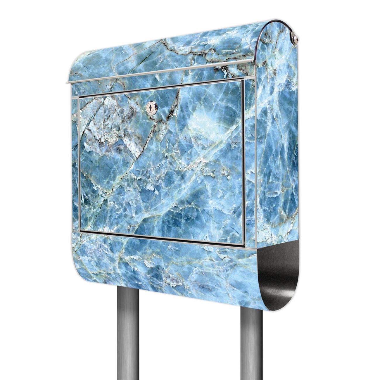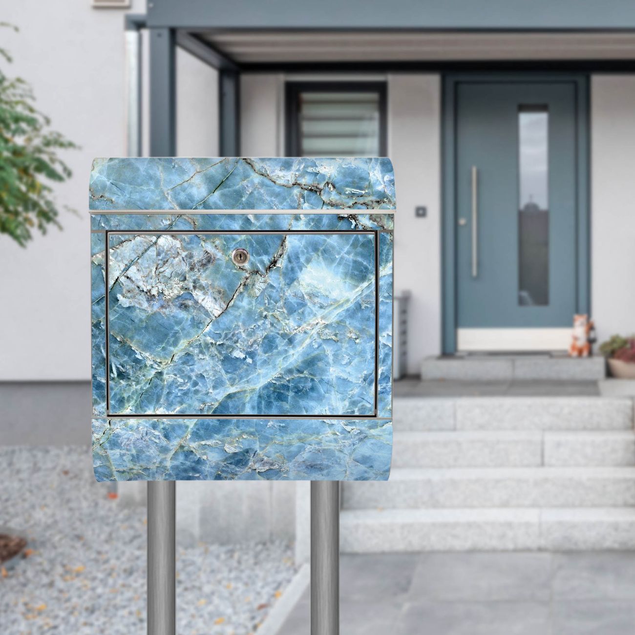 Der Motivstandbriefkasten hat ein sehr ansprechendes und ausgefallenes Design, damit entlocken Sie Ihren Nachbarn und dem Postboten ein Lächeln. Heben Sie Sich ab von der tristen grauen Masse, ohne auf Funktionalität zu verzichten. Der Briefkasten besteht aus hochwertigem 18/0 Edelstahl und die Wetter- und UV-resistenten Folie mit Motiv Blauer Marmor Motiv ist zusätzlich mit einem Schutzlaminat überzogen. Der Standbriefkasten wird mit Montagematerial und zwei Schlüsseln geliefert.