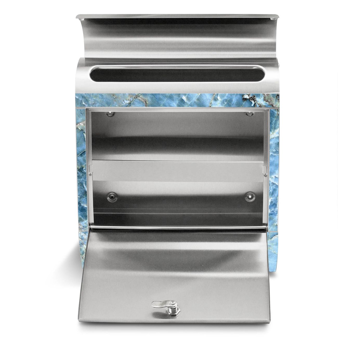 Der banjado Edelstahl Standbriefkasten mit Motiv Motiv Blauer Marmor bietet Ihnen mit seinem Fassungsvermögen genügend Platz auch für große A4 Sendungen. Das integrierte Zeitungsfach eignet sich hervorragend, um unkompliziert die Tageszeitung zu fassen.