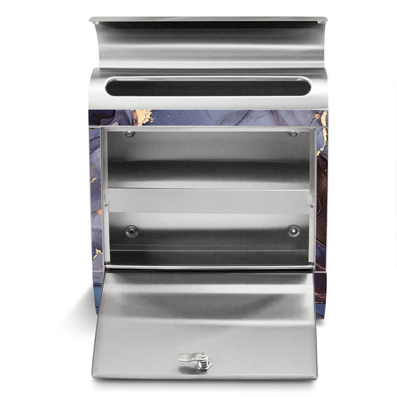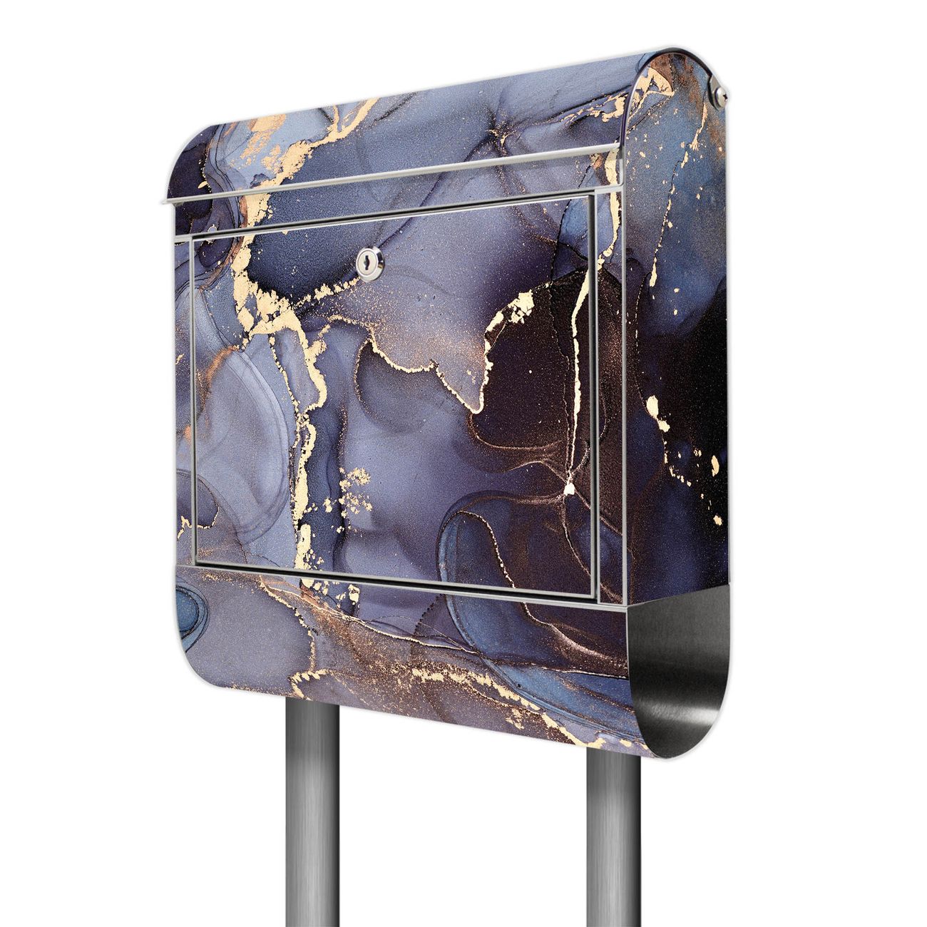 Der Motivstandbriefkasten hat ein sehr ansprechendes und ausgefallenes Design, damit entlocken Sie Ihren Nachbarn und dem Postboten ein Lächeln. Heben Sie Sich ab von der tristen grauen Masse, ohne auf Funktionalität zu verzichten. Der Briefkasten besteht aus hochwertigem 18/0 Edelstahl und die Wetter- und UV-resistenten Folie mit Motiv Lila Marmor mit Gold 1 Motiv ist zusätzlich mit einem Schutzlaminat überzogen. Der Standbriefkasten wird mit Montagematerial und zwei Schlüsseln geliefert.