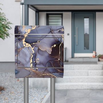 Der banjado Edelstahl Standbriefkasten mit Motiv Motiv Lila Marmor mit Gold 1 bietet Ihnen mit seinem Fassungsvermögen genügend Platz auch für große A4 Sendungen. Das integrierte Zeitungsfach eignet sich hervorragend, um unkompliziert die Tageszeitung zu fassen.