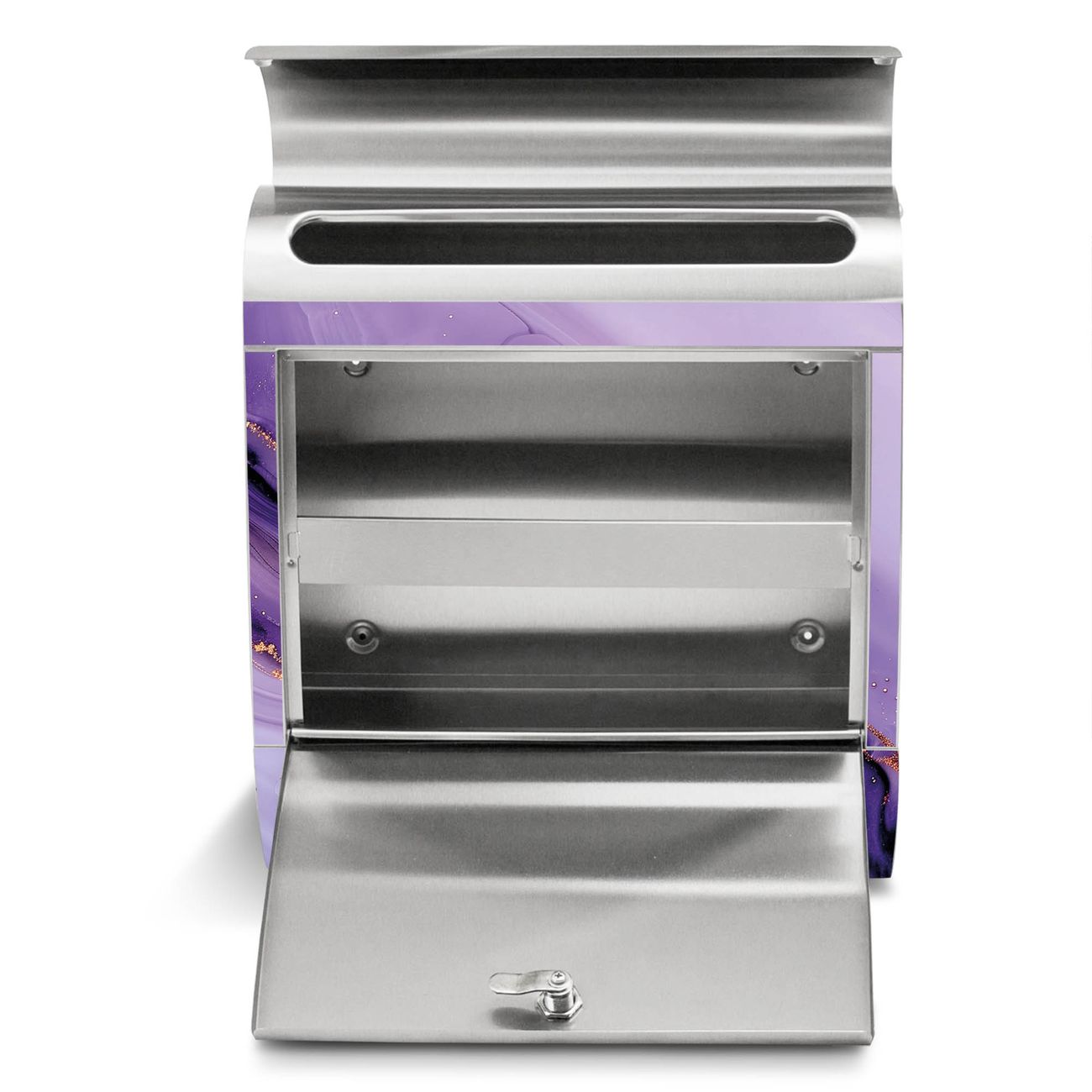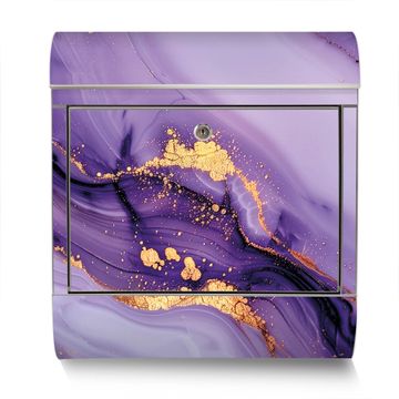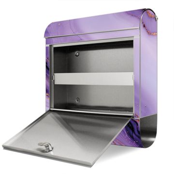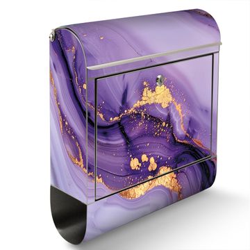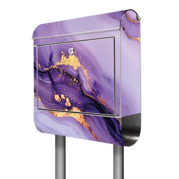 Der banjado Edelstahl Standbriefkasten mit Motiv Motiv Lila Marmor mit Gold 3 bietet Ihnen mit seinem Fassungsvermögen genügend Platz auch für große A4 Sendungen. Das integrierte Zeitungsfach eignet sich hervorragend, um unkompliziert die Tageszeitung zu fassen.