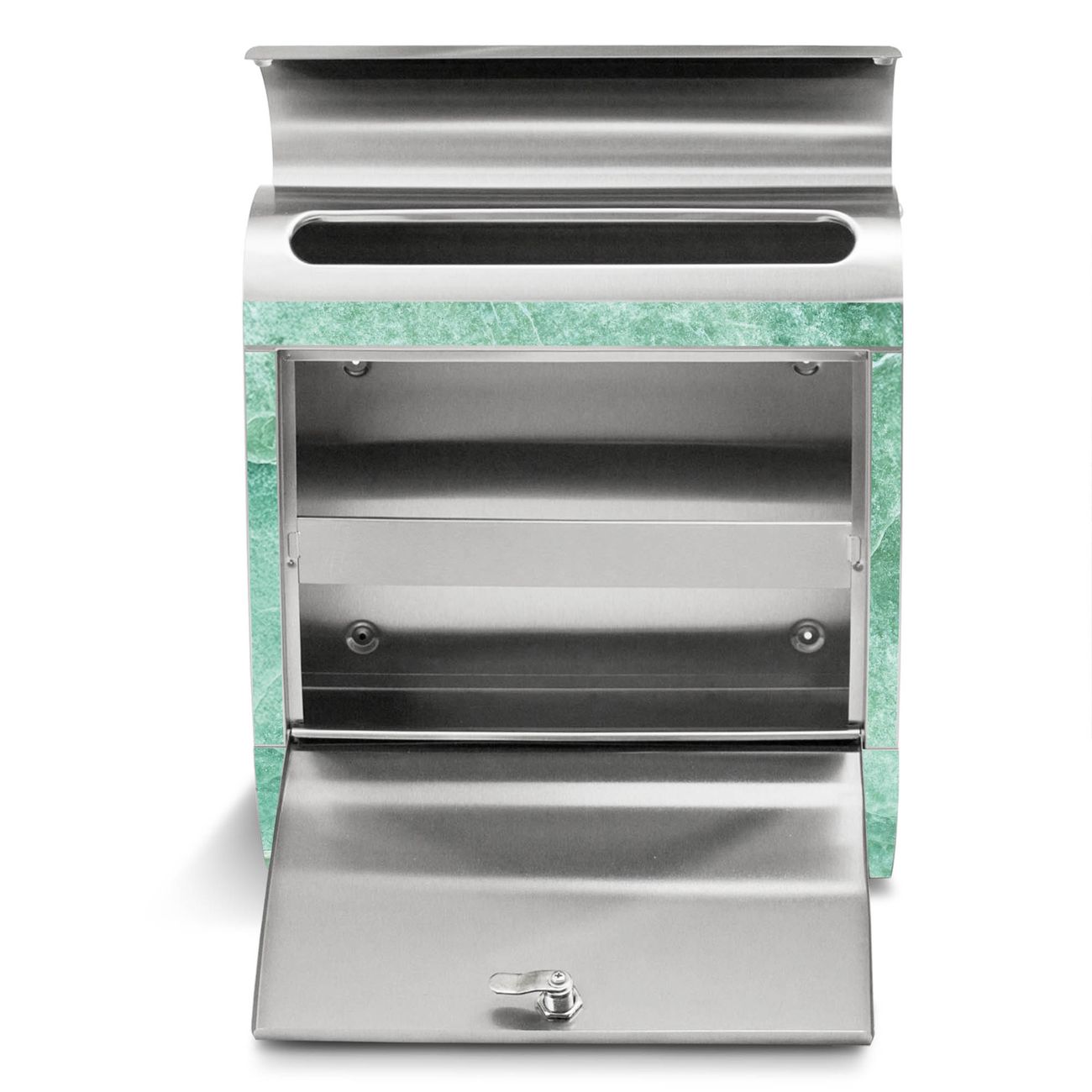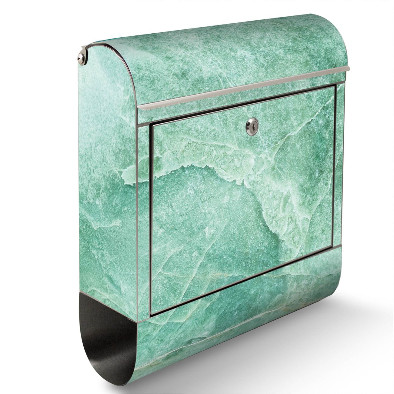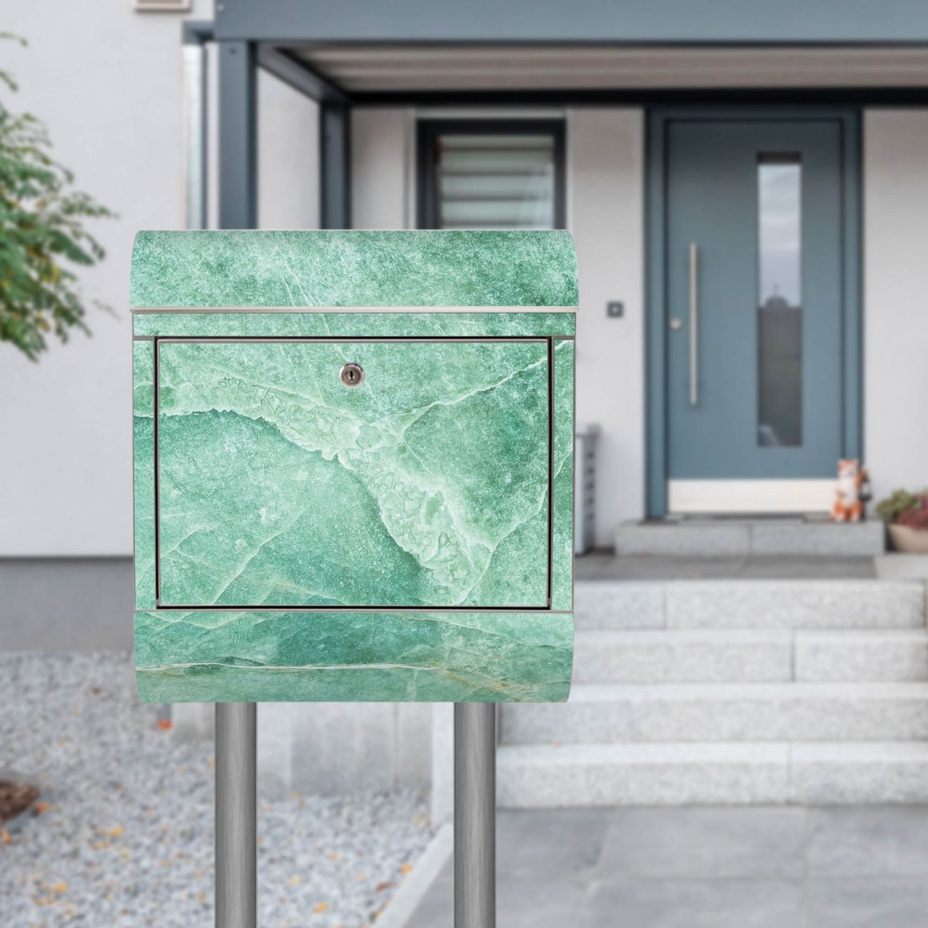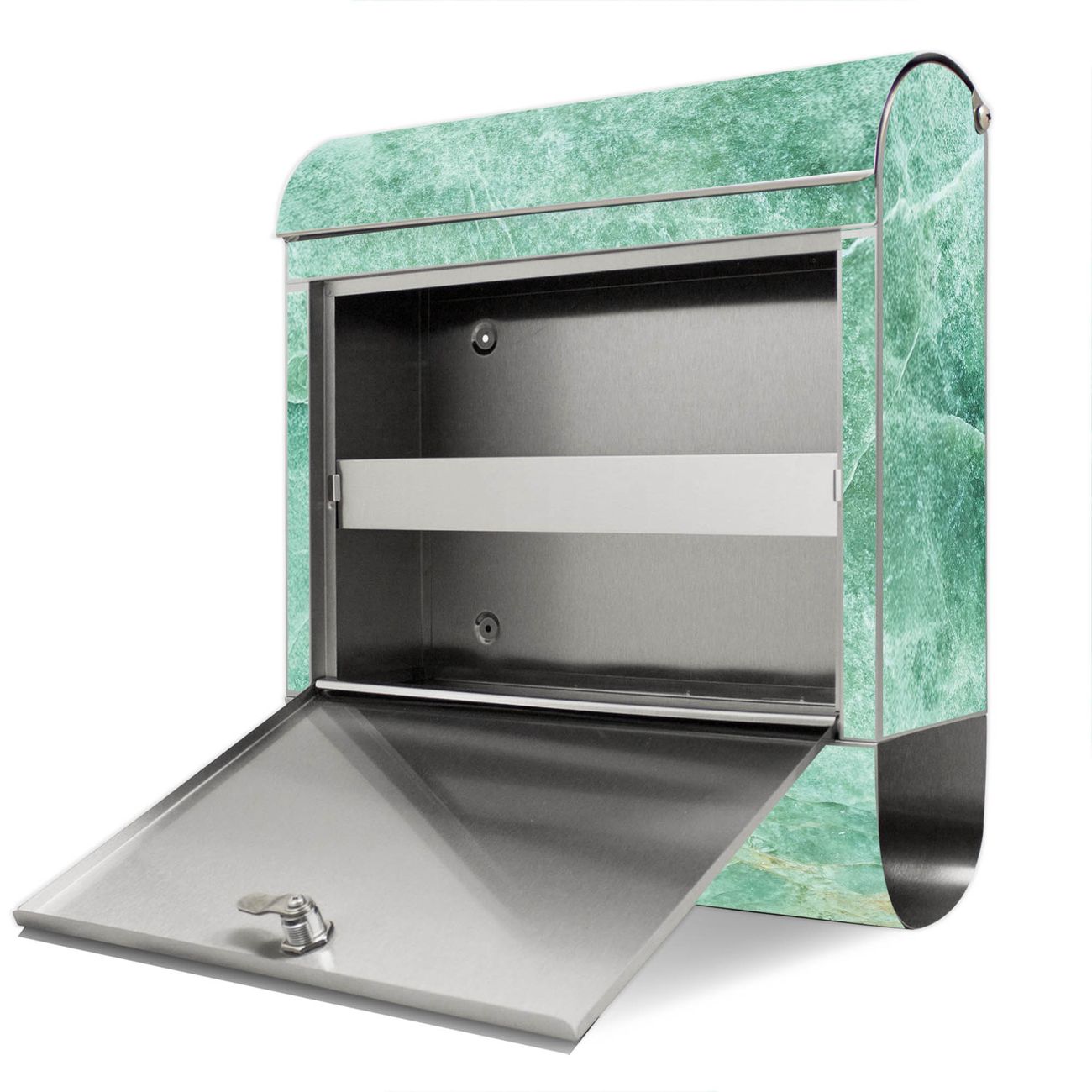 Der banjado Edelstahl Standbriefkasten mit Motiv Motiv Grüner Marmor 2 bietet Ihnen mit seinem Fassungsvermögen genügend Platz auch für große A4 Sendungen. Das integrierte Zeitungsfach eignet sich hervorragend, um unkompliziert die Tageszeitung zu fassen.