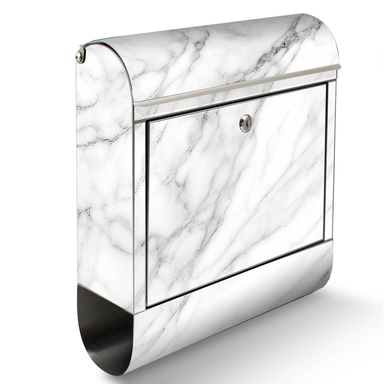 Der banjado Edelstahl Standbriefkasten mit Motiv Motiv Weißer Marmor bietet Ihnen mit seinem Fassungsvermögen genügend Platz auch für große A4 Sendungen. Das integrierte Zeitungsfach eignet sich hervorragend, um unkompliziert die Tageszeitung zu fassen.