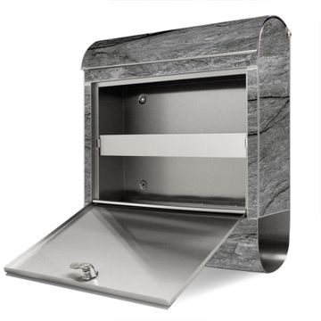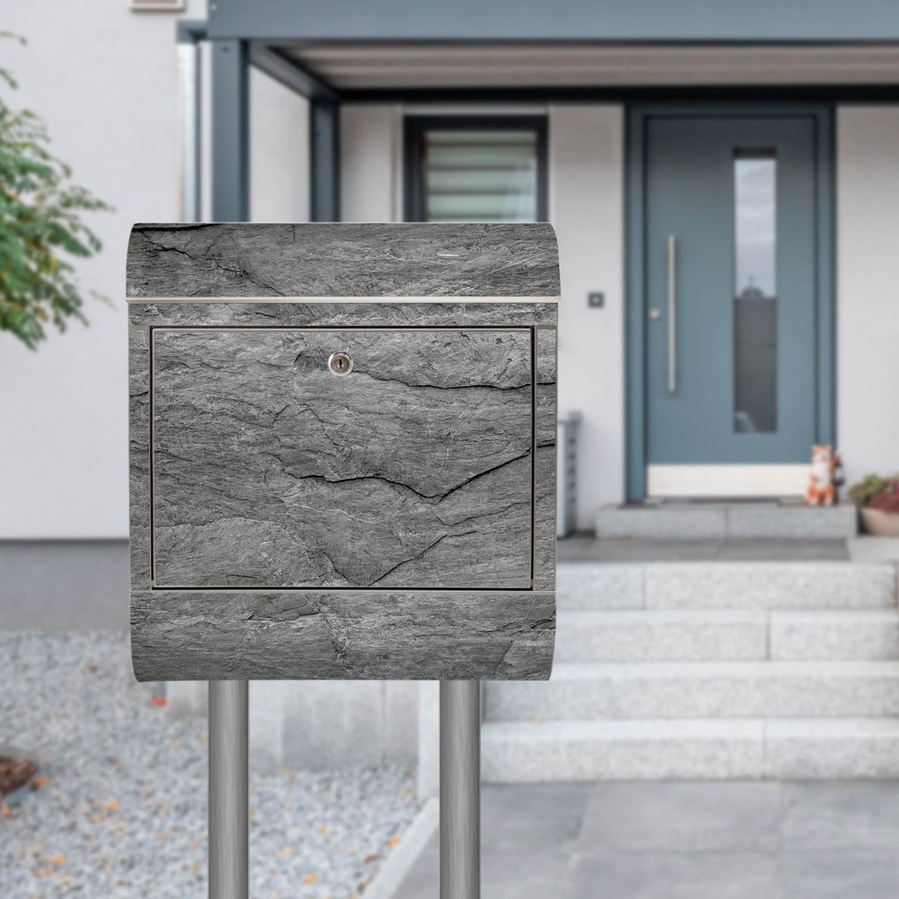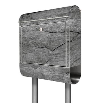 Der banjado Edelstahl Standbriefkasten mit Motiv Motiv Schiefer Platte 1 bietet Ihnen mit seinem Fassungsvermögen genügend Platz auch für große A4 Sendungen. Das integrierte Zeitungsfach eignet sich hervorragend, um unkompliziert die Tageszeitung zu fassen.