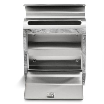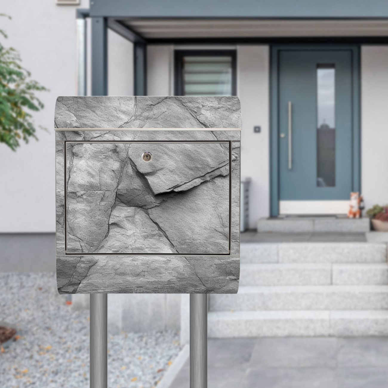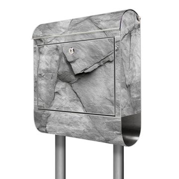 Der banjado Edelstahl Standbriefkasten mit Motiv Motiv Schiefer Platte 2 bietet Ihnen mit seinem Fassungsvermögen genügend Platz auch für große A4 Sendungen. Das integrierte Zeitungsfach eignet sich hervorragend, um unkompliziert die Tageszeitung zu fassen.