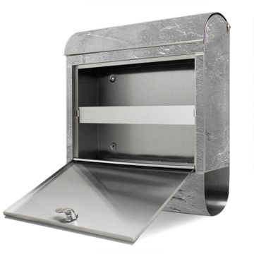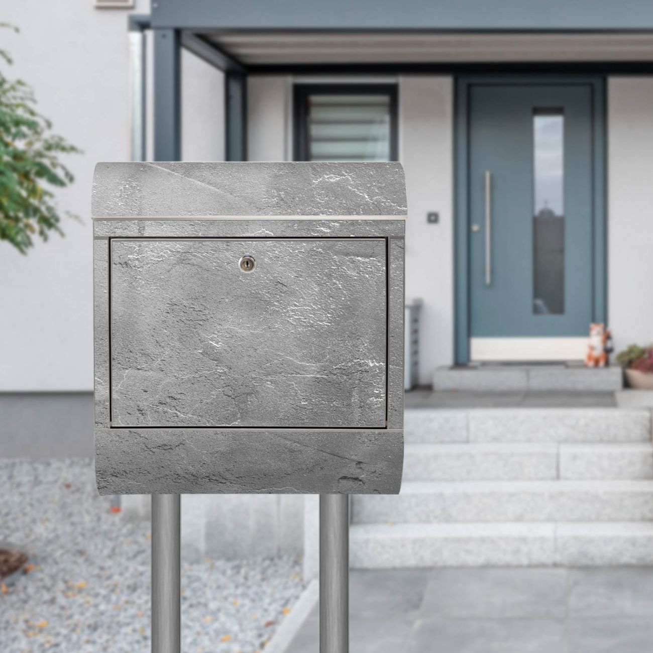 Der banjado Edelstahl Standbriefkasten mit Motiv Motiv Schiefer Platte 3 bietet Ihnen mit seinem Fassungsvermögen genügend Platz auch für große A4 Sendungen. Das integrierte Zeitungsfach eignet sich hervorragend, um unkompliziert die Tageszeitung zu fassen.