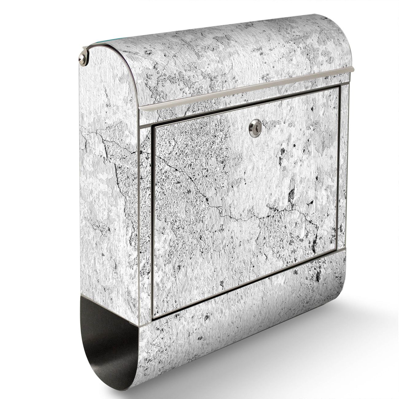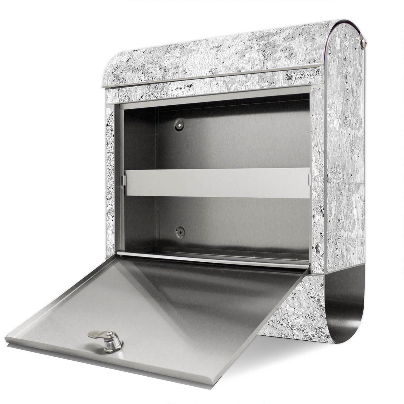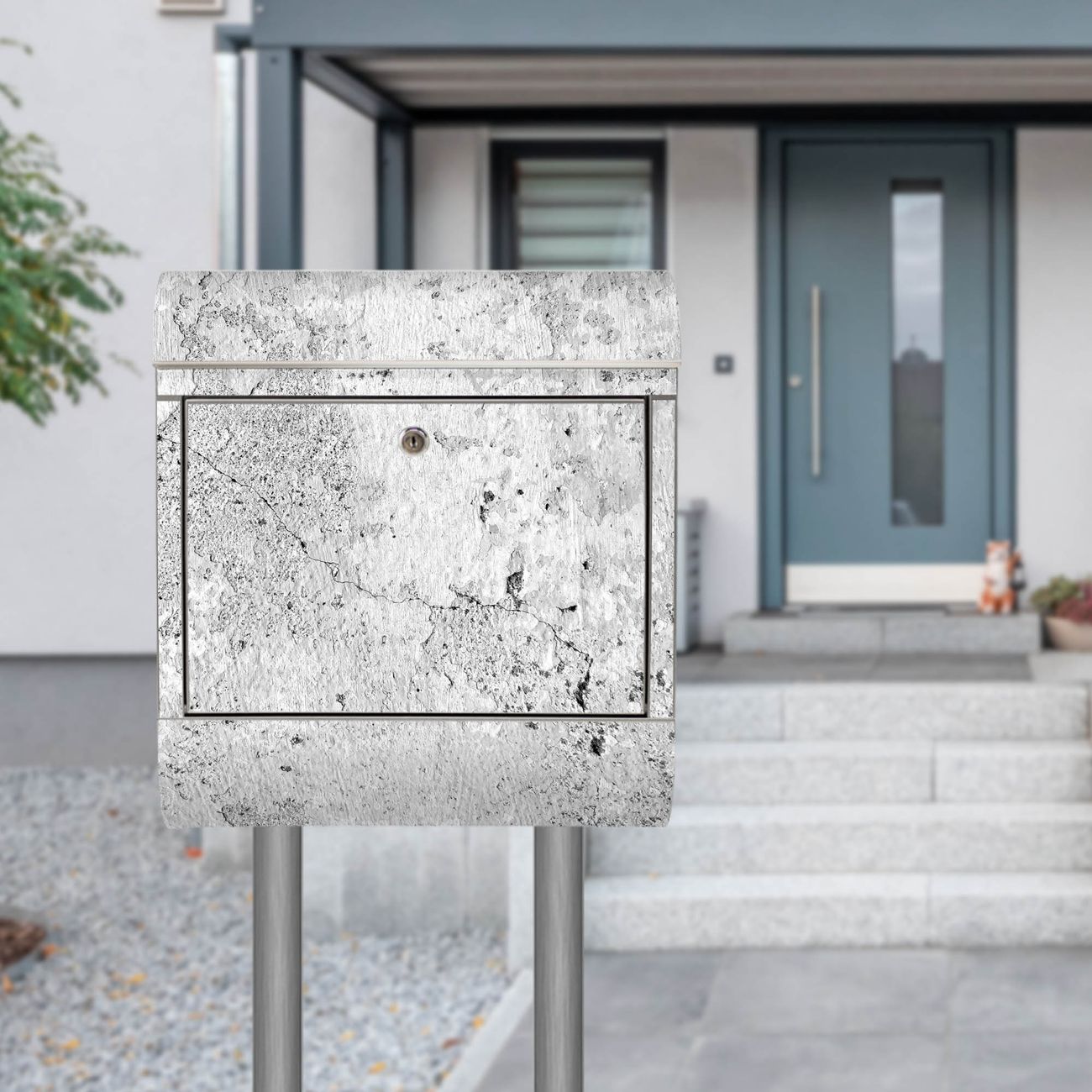Der banjado Edelstahl Standbriefkasten mit Motiv Motiv Betontextur Grau 2 bietet Ihnen mit seinem Fassungsvermögen genügend Platz auch für große A4 Sendungen. Das integrierte Zeitungsfach eignet sich hervorragend, um unkompliziert die Tageszeitung zu fassen.