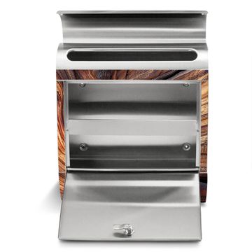 Der banjado Edelstahl Standbriefkasten mit Motiv Motiv Holz Gemasert Kurve bietet Ihnen mit seinem Fassungsvermögen genügend Platz auch für große A4 Sendungen. Das integrierte Zeitungsfach eignet sich hervorragend, um unkompliziert die Tageszeitung zu fassen.