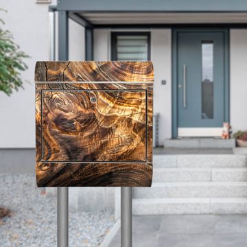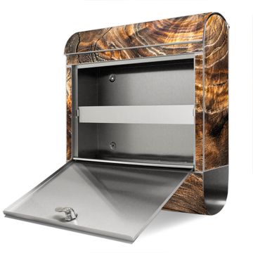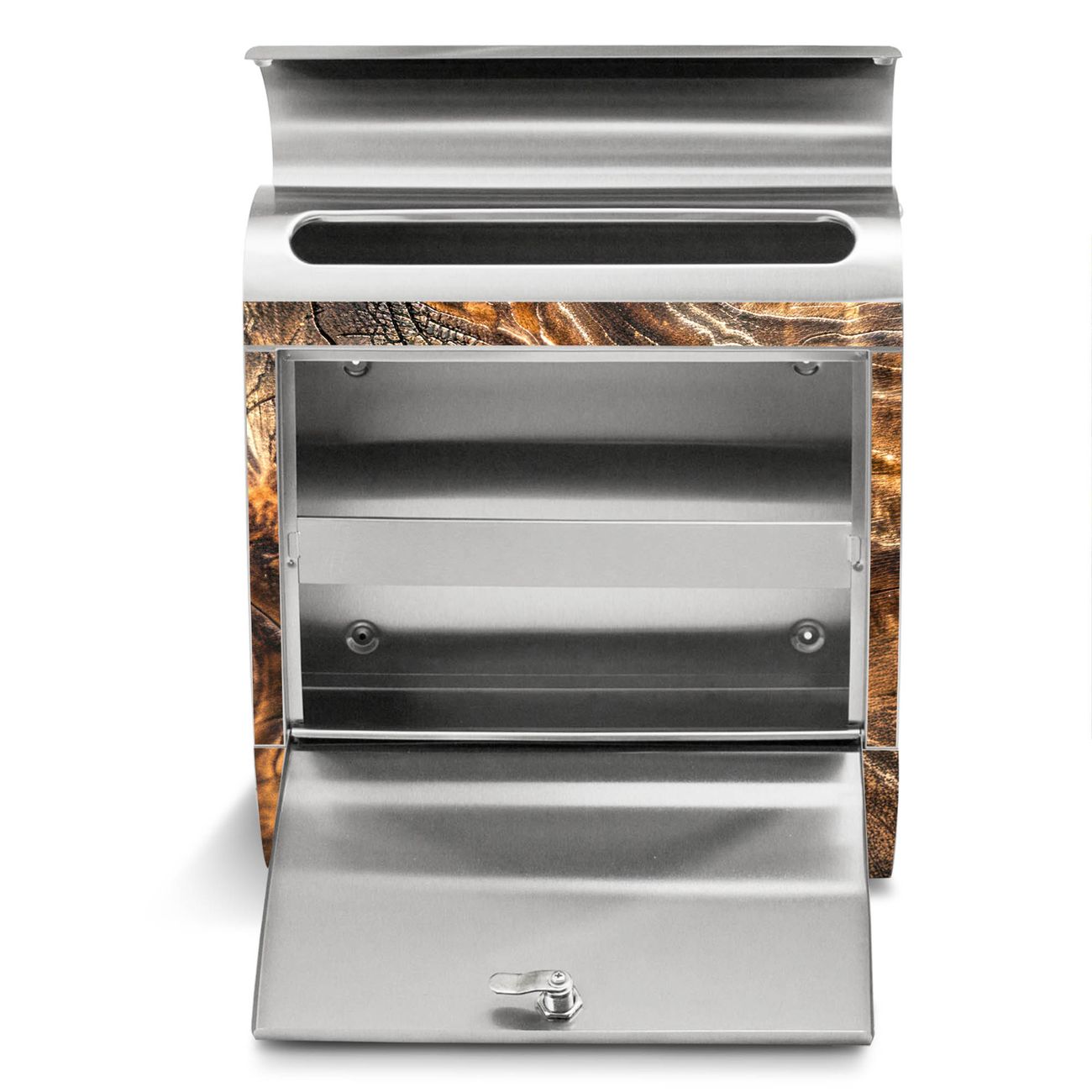 Der banjado Edelstahl Standbriefkasten mit Motiv Motiv Holz Gemasert Lichtspiel bietet Ihnen mit seinem Fassungsvermögen genügend Platz auch für große A4 Sendungen. Das integrierte Zeitungsfach eignet sich hervorragend, um unkompliziert die Tageszeitung zu fassen.