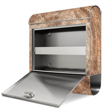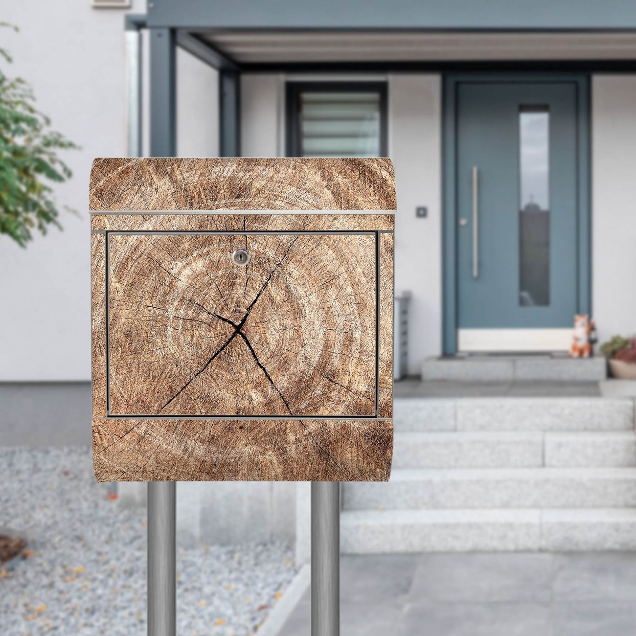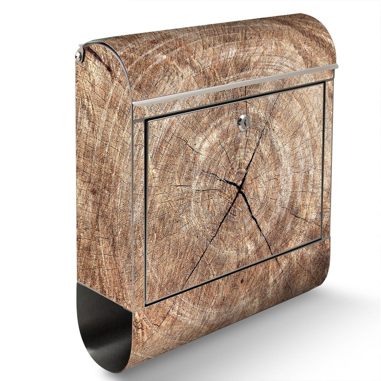 Der banjado Edelstahl Standbriefkasten mit Motiv Motiv Holzkreis mit Rissen bietet Ihnen mit seinem Fassungsvermögen genügend Platz auch für große A4 Sendungen. Das integrierte Zeitungsfach eignet sich hervorragend, um unkompliziert die Tageszeitung zu fassen.