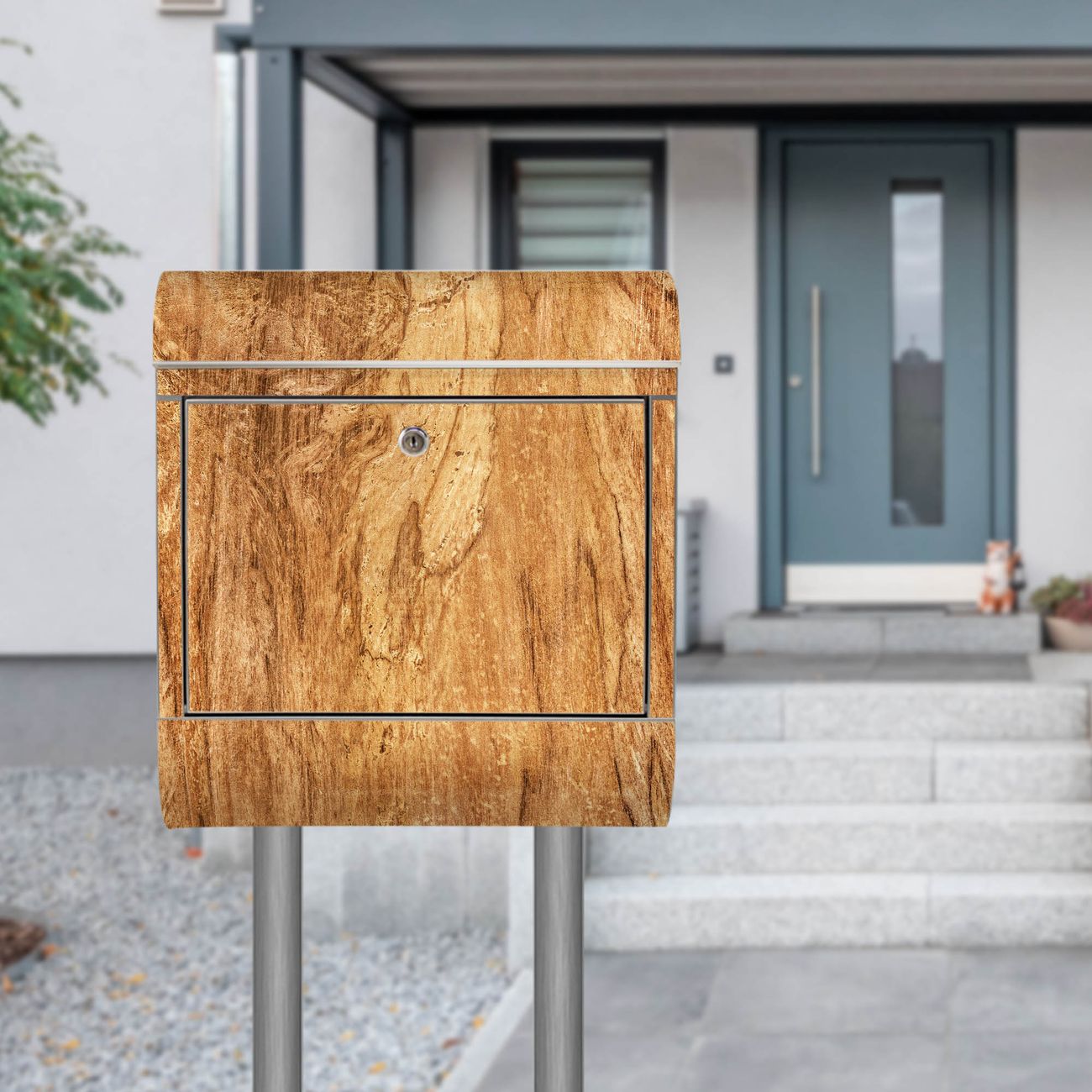 Der Motivstandbriefkasten hat ein sehr ansprechendes und ausgefallenes Design, damit entlocken Sie Ihren Nachbarn und dem Postboten ein Lächeln. Heben Sie Sich ab von der tristen grauen Masse, ohne auf Funktionalität zu verzichten. Der Briefkasten besteht aus hochwertigem 18/0 Edelstahl und die Wetter- und UV-resistenten Folie mit Motiv Holz Struktur mit Astloch Motiv ist zusätzlich mit einem Schutzlaminat überzogen. Der Standbriefkasten wird mit Montagematerial und zwei Schlüsseln geliefert.