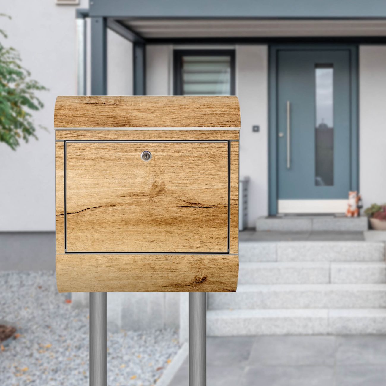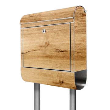Der Motivstandbriefkasten hat ein sehr ansprechendes und ausgefallenes Design, damit entlocken Sie Ihren Nachbarn und dem Postboten ein Lächeln. Heben Sie Sich ab von der tristen grauen Masse, ohne auf Funktionalität zu verzichten. Der Briefkasten besteht aus hochwertigem 18/0 Edelstahl und die Wetter- und UV-resistenten Folie mit Motiv Holzfurnier Motiv ist zusätzlich mit einem Schutzlaminat überzogen. Der Standbriefkasten wird mit Montagematerial und zwei Schlüsseln geliefert.
