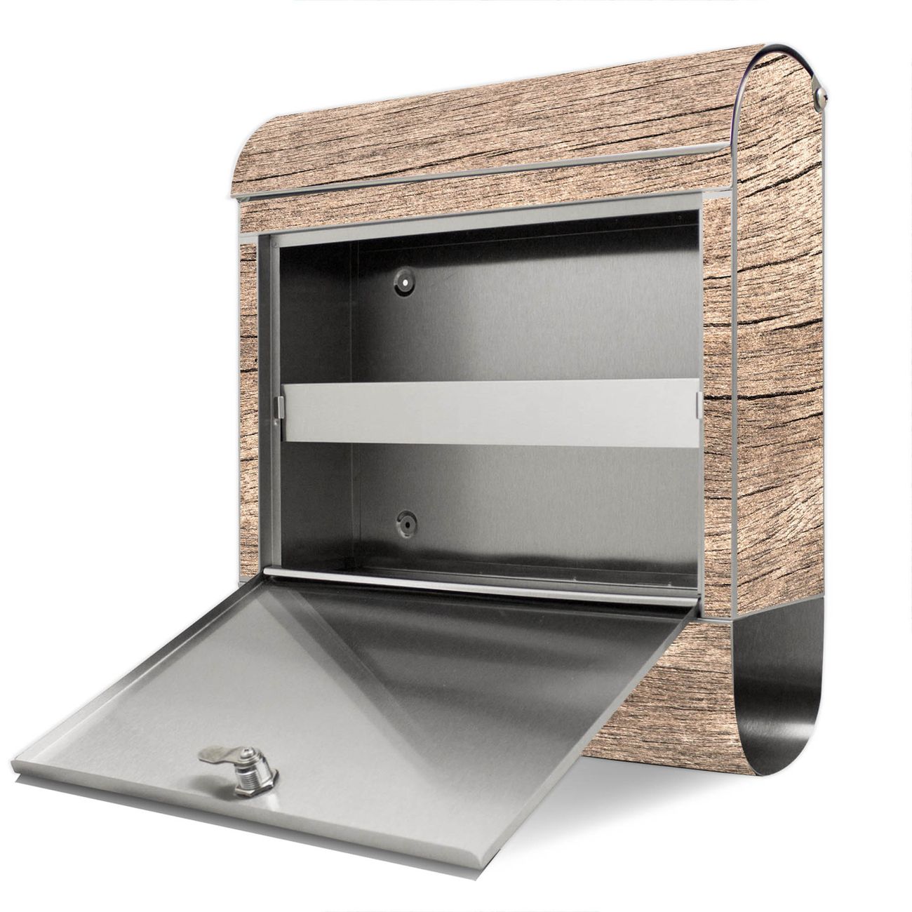 Der Motivstandbriefkasten hat ein sehr ansprechendes und ausgefallenes Design, damit entlocken Sie Ihren Nachbarn und dem Postboten ein Lächeln. Heben Sie Sich ab von der tristen grauen Masse, ohne auf Funktionalität zu verzichten. Der Briefkasten besteht aus hochwertigem 18/0 Edelstahl und die Wetter- und UV-resistenten Folie mit Motiv Holz Struktur Warmgrau Motiv ist zusätzlich mit einem Schutzlaminat überzogen. Der Standbriefkasten wird mit Montagematerial und zwei Schlüsseln geliefert.