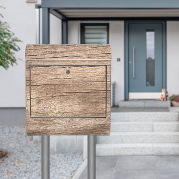 Der banjado Edelstahl Standbriefkasten mit Motiv Motiv Holz Struktur Warmgrau bietet Ihnen mit seinem Fassungsvermögen genügend Platz auch für große A4 Sendungen. Das integrierte Zeitungsfach eignet sich hervorragend, um unkompliziert die Tageszeitung zu fassen.