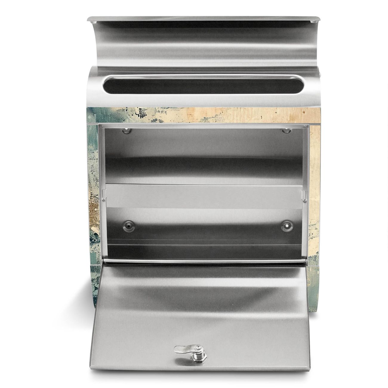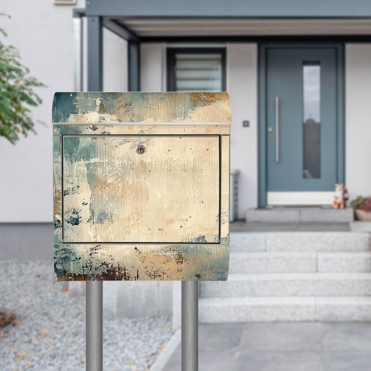 Der Motivstandbriefkasten hat ein sehr ansprechendes und ausgefallenes Design, damit entlocken Sie Ihren Nachbarn und dem Postboten ein Lächeln. Heben Sie Sich ab von der tristen grauen Masse, ohne auf Funktionalität zu verzichten. Der Briefkasten besteht aus hochwertigem 18/0 Edelstahl und die Wetter- und UV-resistenten Folie mit Motiv Abstrakte Textur Motiv ist zusätzlich mit einem Schutzlaminat überzogen. Der Standbriefkasten wird mit Montagematerial und zwei Schlüsseln geliefert.