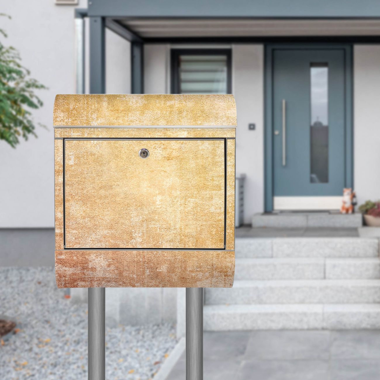 Der Motivstandbriefkasten hat ein sehr ansprechendes und ausgefallenes Design, damit entlocken Sie Ihren Nachbarn und dem Postboten ein Lächeln. Heben Sie Sich ab von der tristen grauen Masse, ohne auf Funktionalität zu verzichten. Der Briefkasten besteht aus hochwertigem 18/0 Edelstahl und die Wetter- und UV-resistenten Folie mit Motiv Nostalgische Tapetenstruktur Motiv ist zusätzlich mit einem Schutzlaminat überzogen. Der Standbriefkasten wird mit Montagematerial und zwei Schlüsseln geliefert.