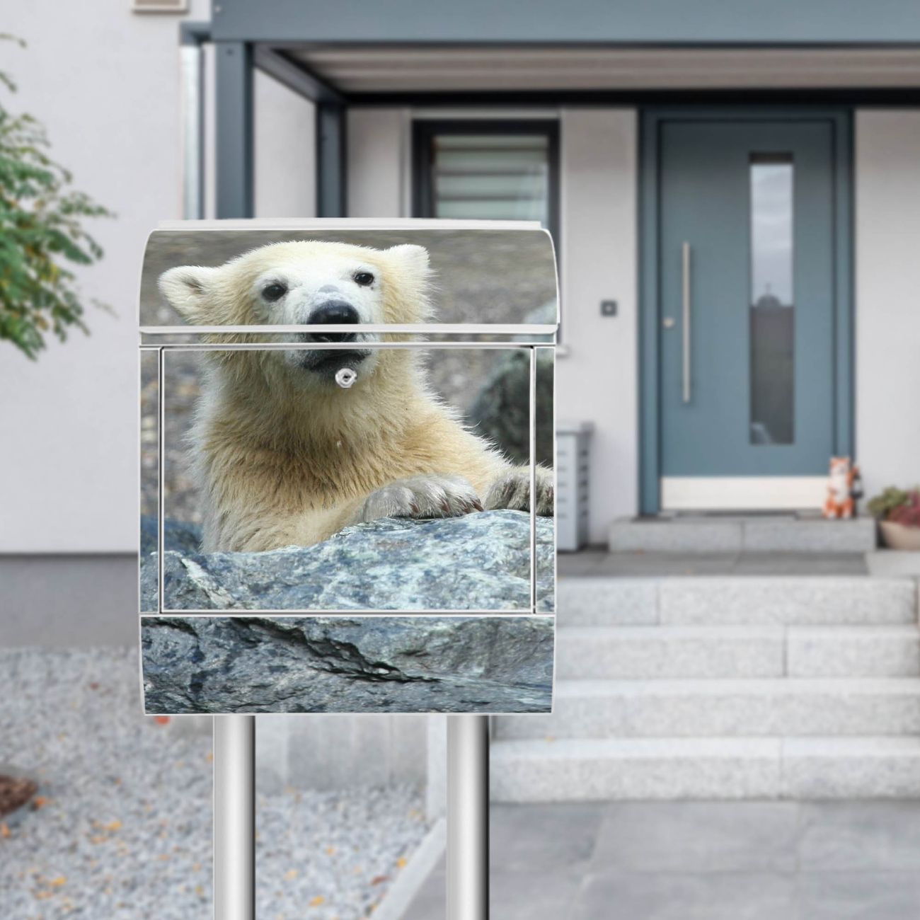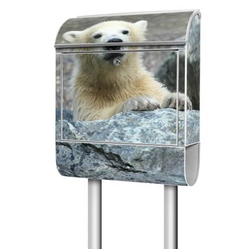 Der banjado Standbriefkasten mit Motiv Motiv Eisbär Baby kombiniert großzügigen Stauraum mit modernem Design. Durch das geräumige Fach finden auch große A4-Sendungen problemlos Platz. Die integrierte Zeitungsrolle sorgt dafür, dass Tageszeitungen und Magazine separat und griffbereit untergebracht sind. Der pulverbeschichtete Standfuß ist farblich passend zum Briefkasten gestaltet und sorgt für ein stimmiges Gesamtbild. Mit dem individuellen Motiv setzen Sie einen optischen Akzent, der sowohl praktisch als auch dekorativ ist.