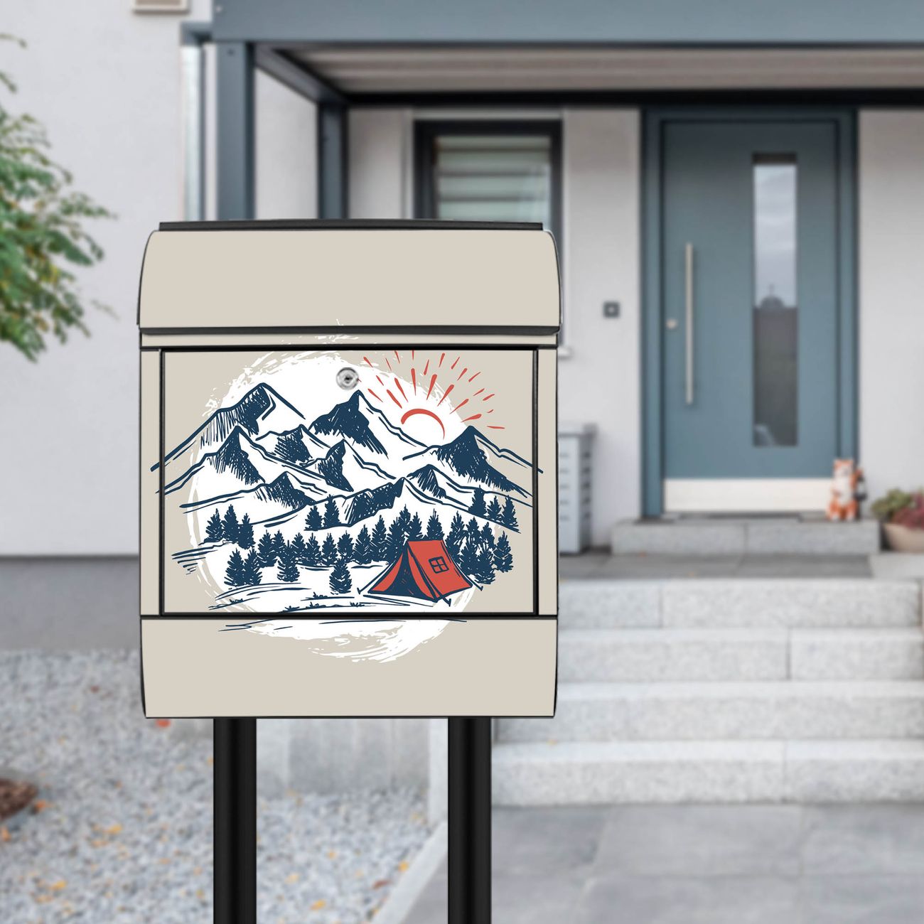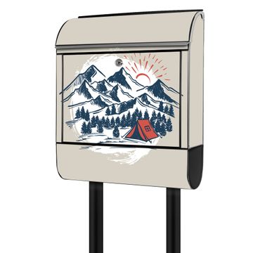 Standbriefkasten Stahl Motiv Bergcamping Abenteuer