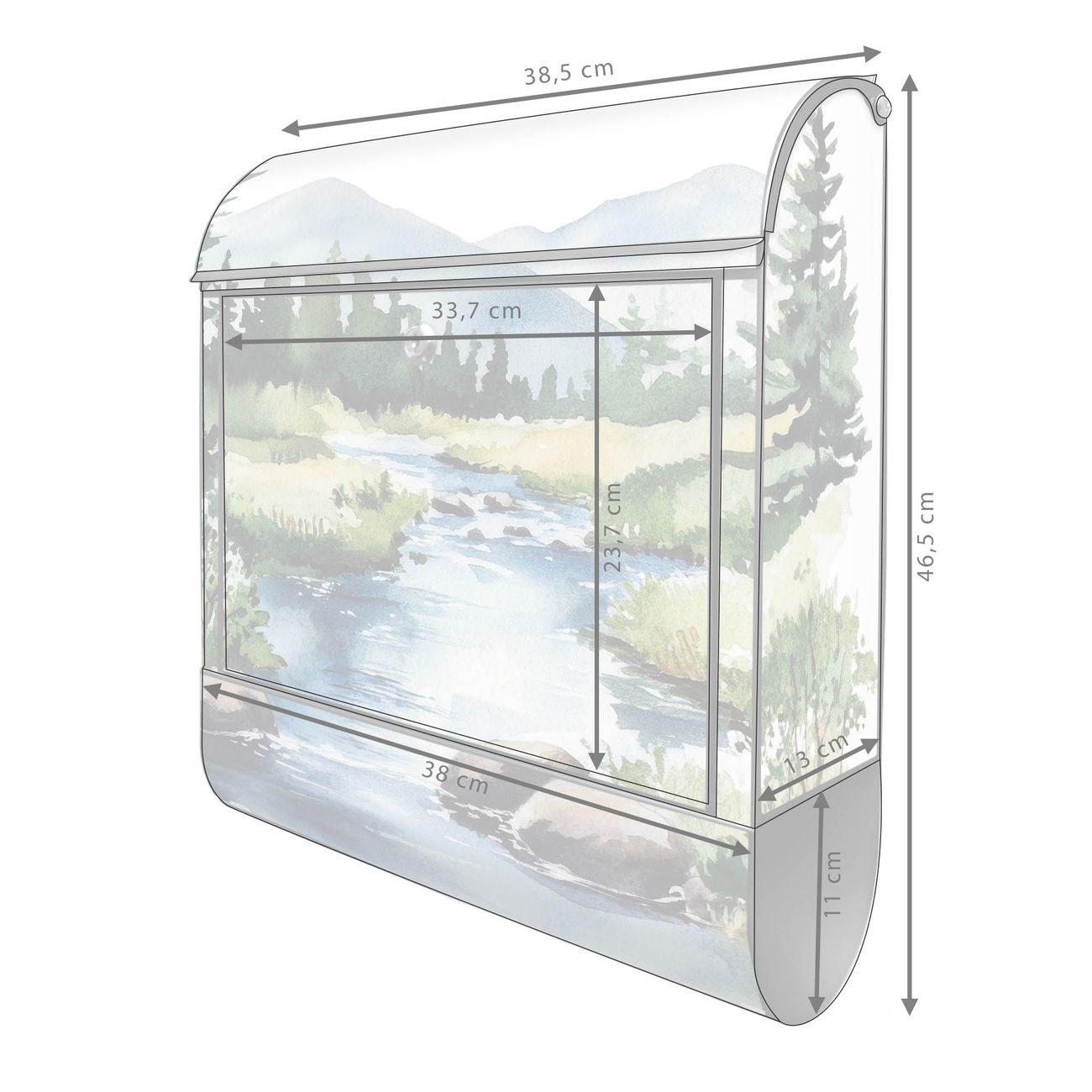 Standbriefkasten Stahl Motiv Bergfluss in der Natur