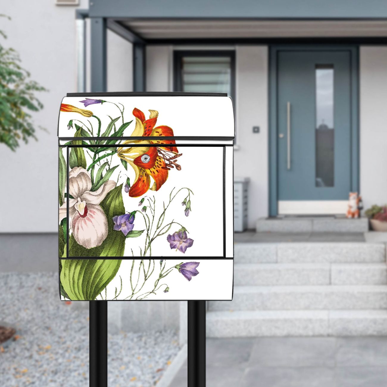 Standbriefkasten Stahl Motiv Blumen Aquarell 2