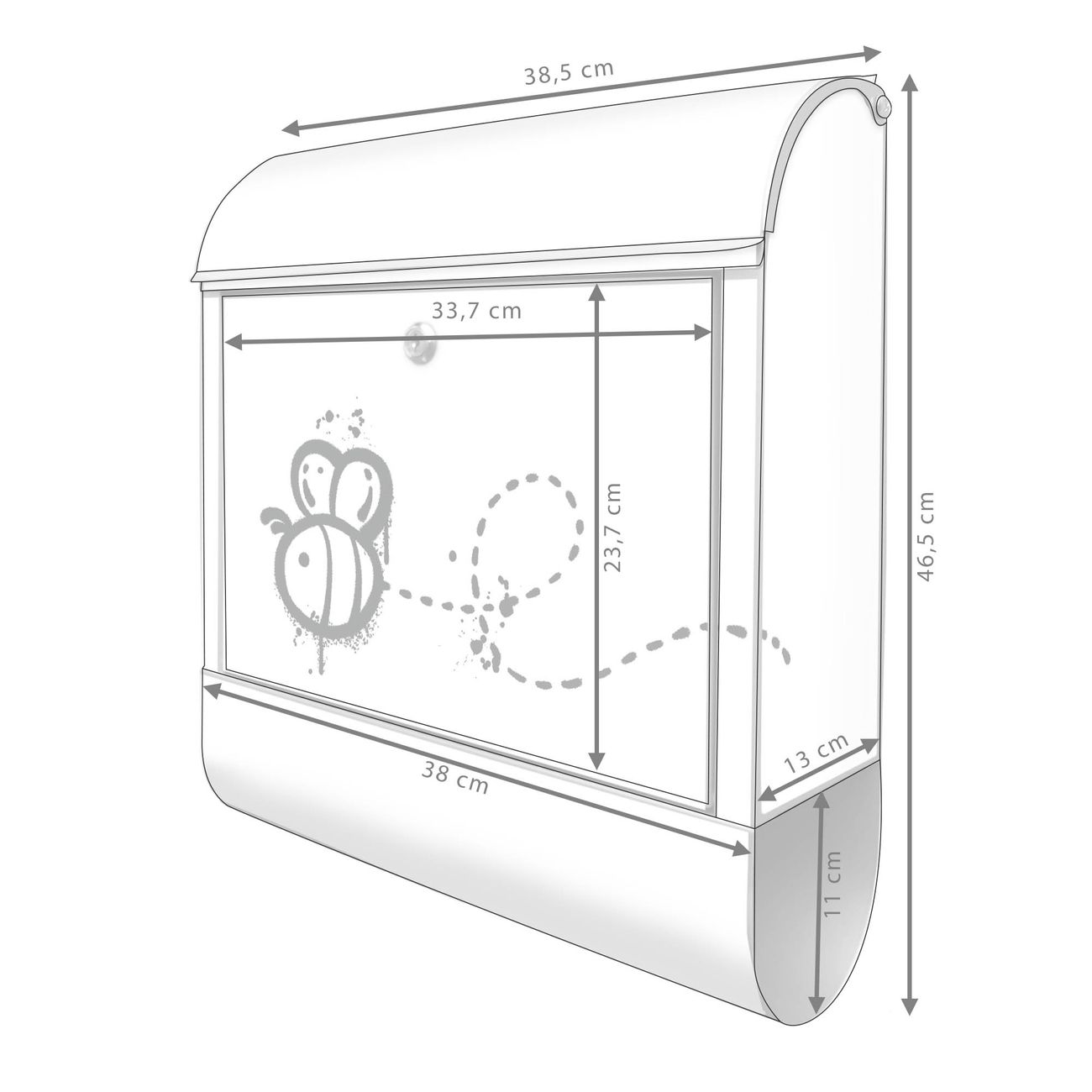 Der banjado Standbriefkasten mit Motiv Motiv Fliegende Biene Graffiti kombiniert großzügigen Stauraum mit modernem Design. Durch das geräumige Fach finden auch große A4-Sendungen problemlos Platz. Die integrierte Zeitungsrolle sorgt dafür, dass Tageszeitungen und Magazine separat und griffbereit untergebracht sind. Der pulverbeschichtete Standfuß ist farblich passend zum Briefkasten gestaltet und sorgt für ein stimmiges Gesamtbild. Mit dem individuellen Motiv setzen Sie einen optischen Akzent, der sowohl praktisch als auch dekorativ ist.