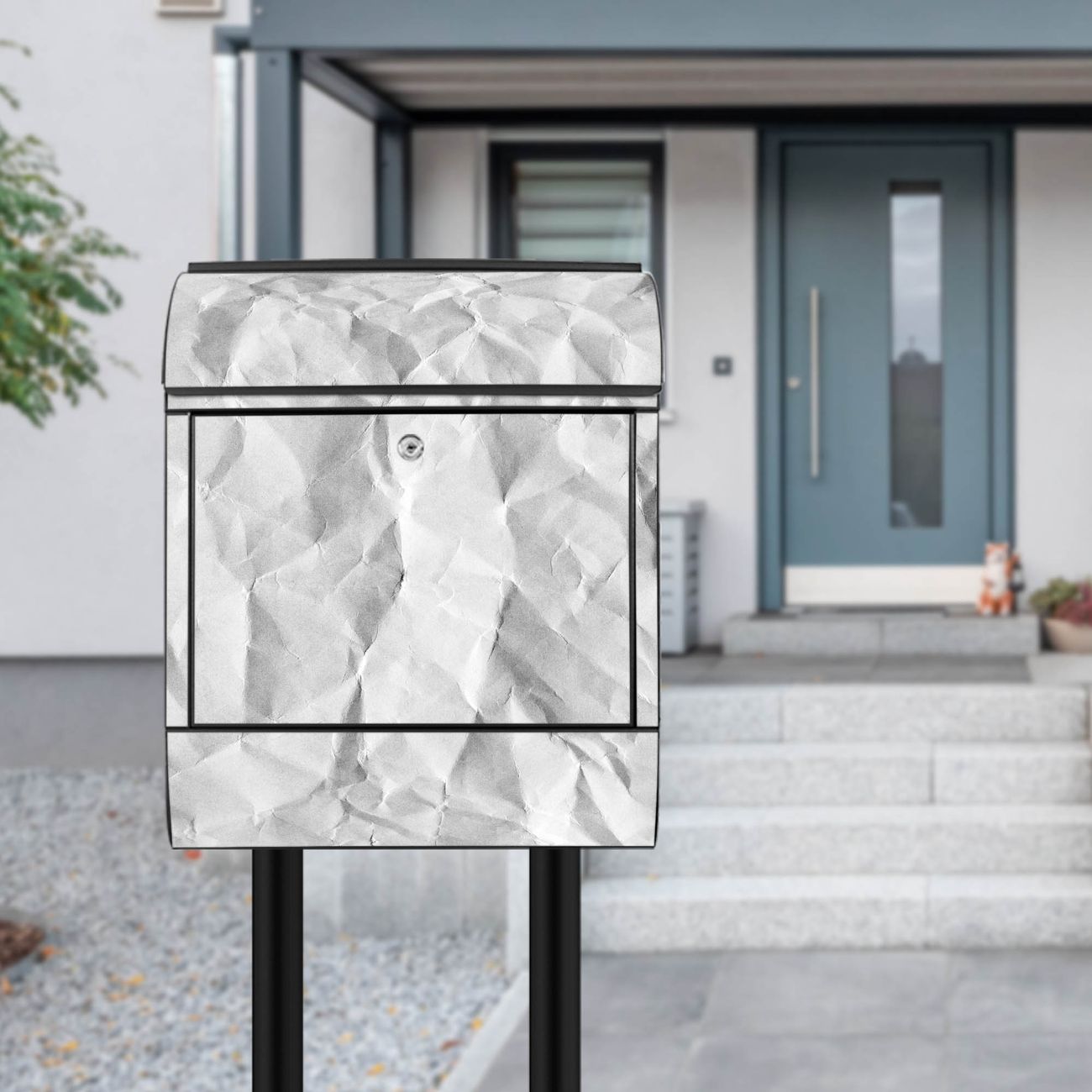 Standbriefkasten Stahl Motiv Geknittertes Papier Grau