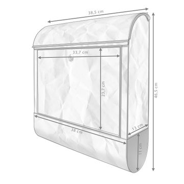 Der banjado Standbriefkasten mit Motiv Motiv Geknittertes Papier Grau kombiniert großzügigen Stauraum mit modernem Design. Durch das geräumige Fach finden auch große A4-Sendungen problemlos Platz. Die integrierte Zeitungsrolle sorgt dafür, dass Tageszeitungen und Magazine separat und griffbereit untergebracht sind. Der pulverbeschichtete Standfuß ist farblich passend zum Briefkasten gestaltet und sorgt für ein stimmiges Gesamtbild. Mit dem individuellen Motiv setzen Sie einen optischen Akzent, der sowohl praktisch als auch dekorativ ist.