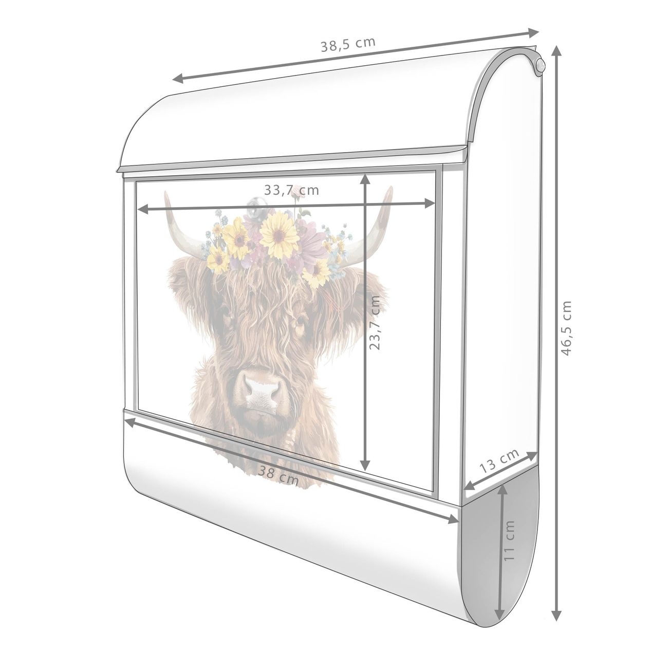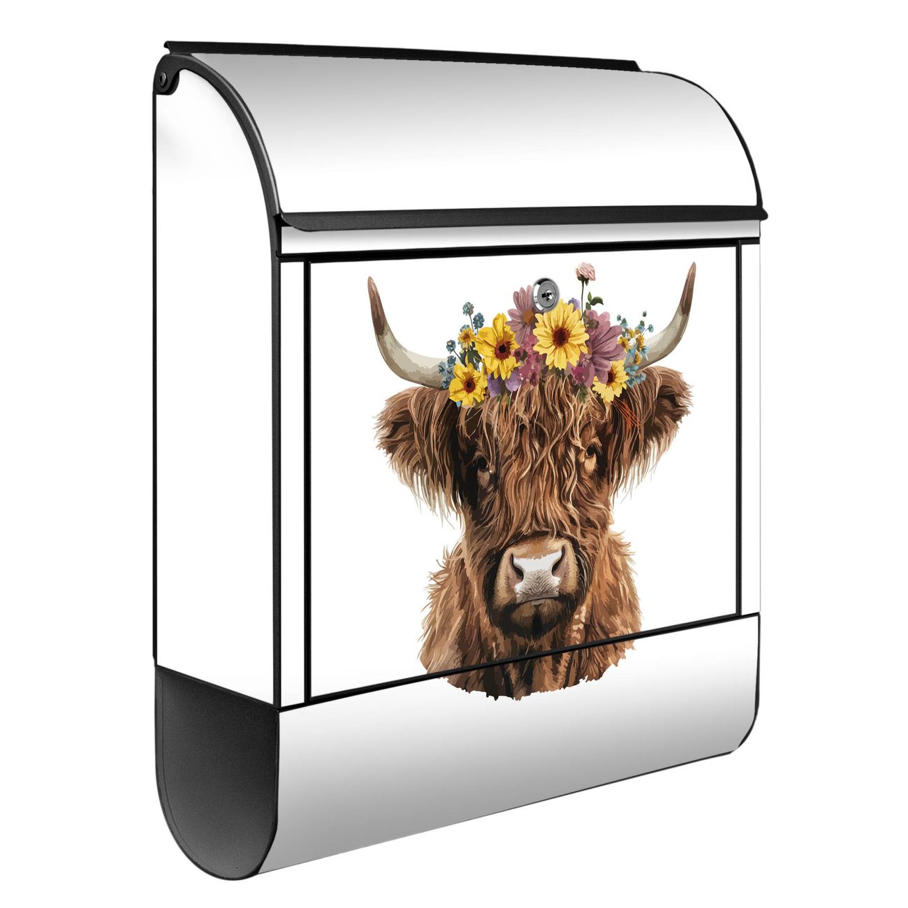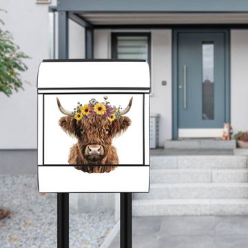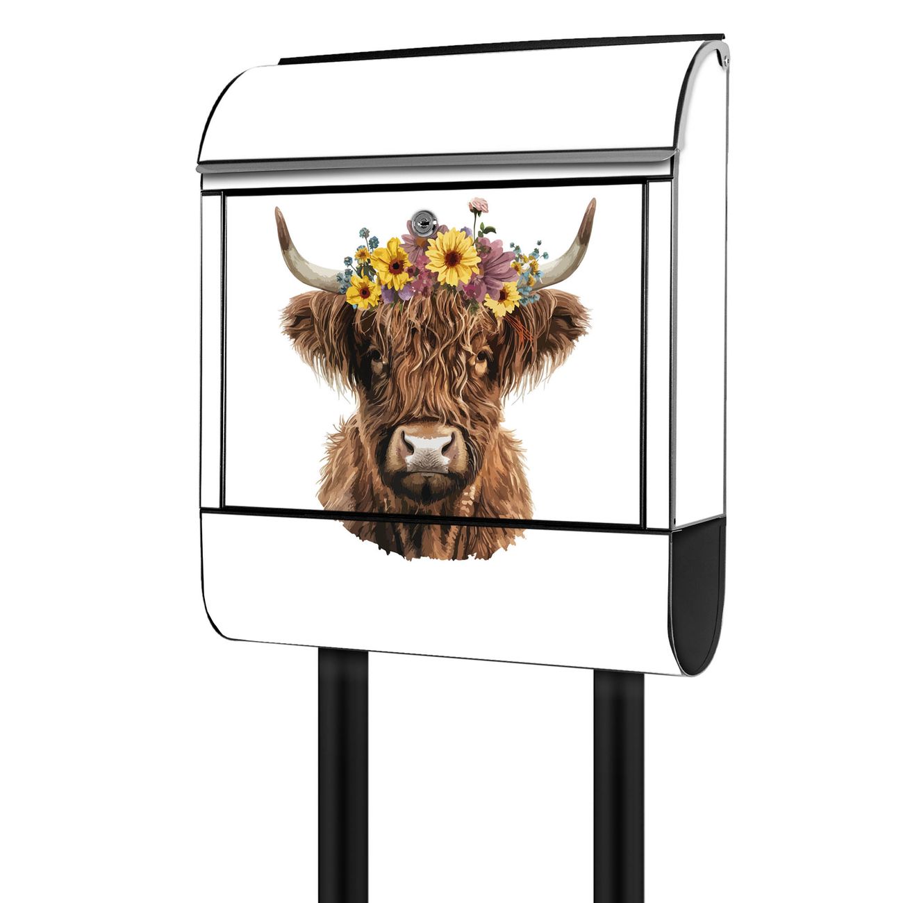 Standbriefkasten Stahl Motiv Hochlandkuh mit Blumenkrone