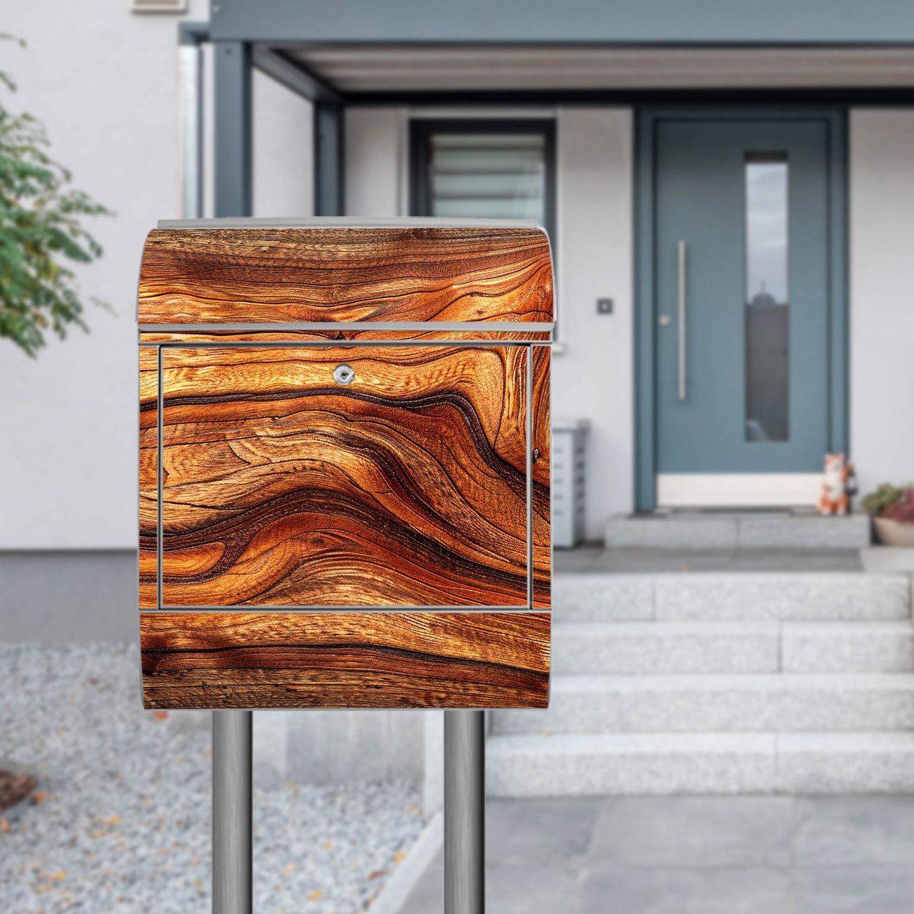 Standbriefkasten Stahl Motiv Holz Gemasert Astloch