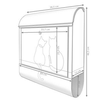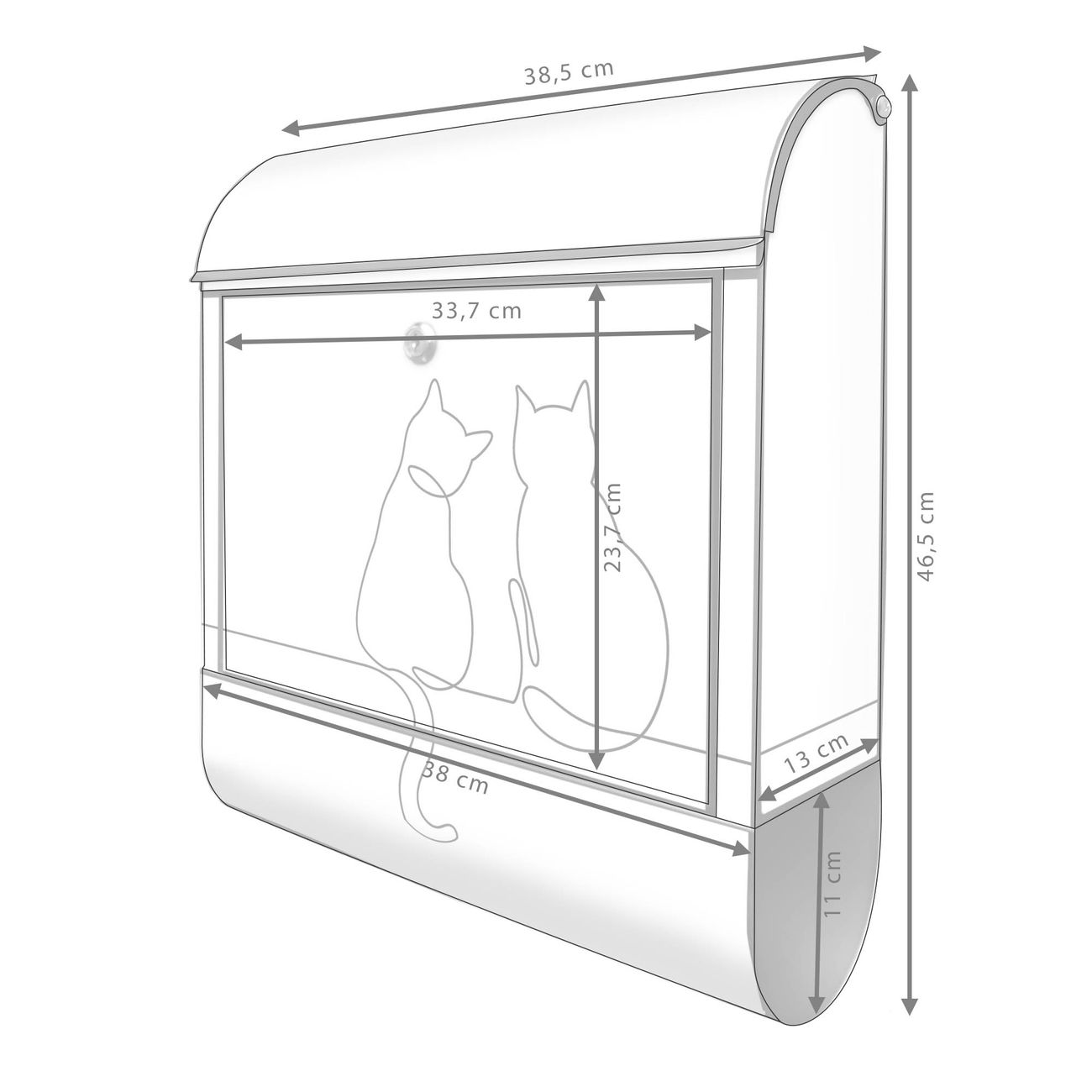Der banjado Standbriefkasten mit Motiv Motiv Katzenliebe 2 kombiniert großzügigen Stauraum mit modernem Design. Durch das geräumige Fach finden auch große A4-Sendungen problemlos Platz. Die integrierte Zeitungsrolle sorgt dafür, dass Tageszeitungen und Magazine separat und griffbereit untergebracht sind. Der pulverbeschichtete Standfuß ist farblich passend zum Briefkasten gestaltet und sorgt für ein stimmiges Gesamtbild. Mit dem individuellen Motiv setzen Sie einen optischen Akzent, der sowohl praktisch als auch dekorativ ist.